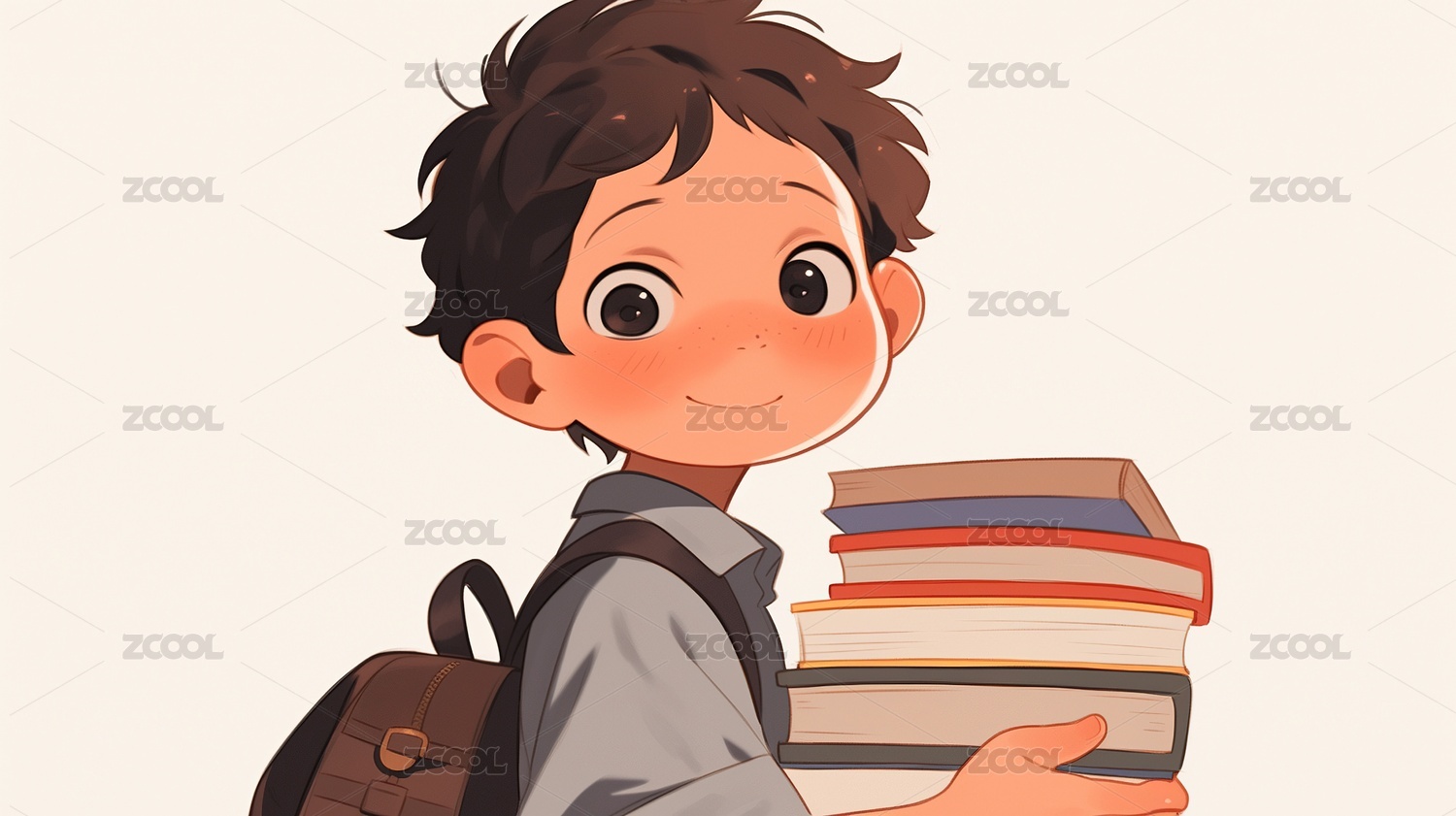 抱着一摞书的小孩