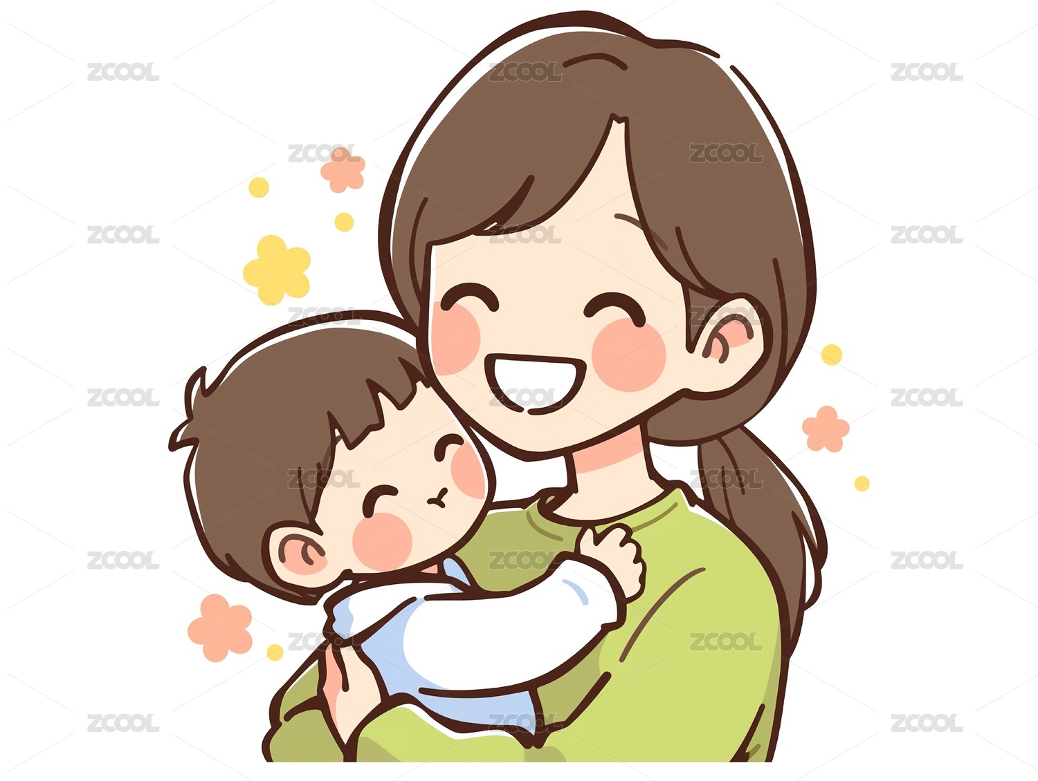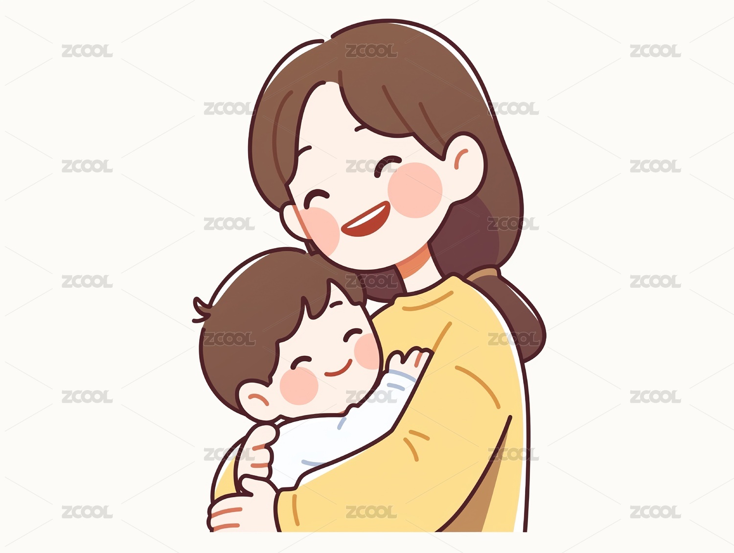 妈妈抱着宝宝插画