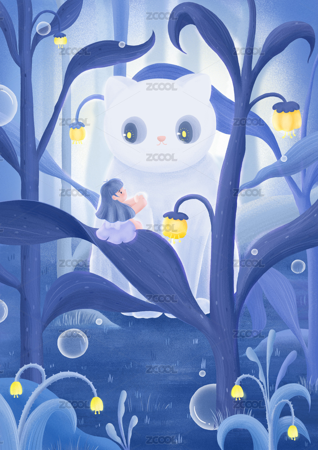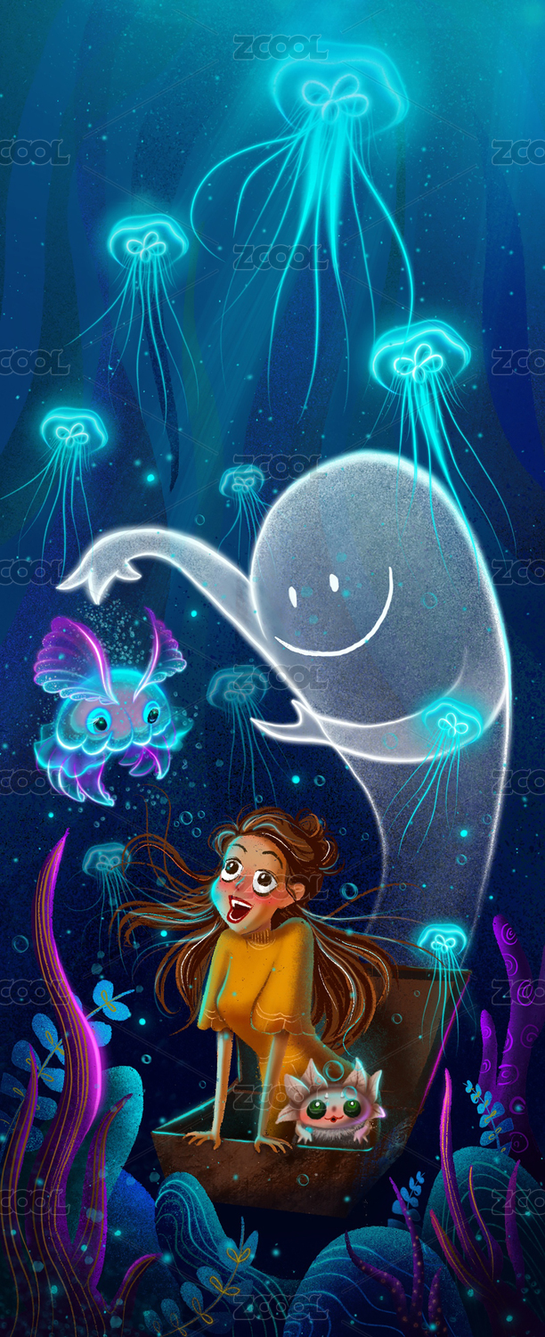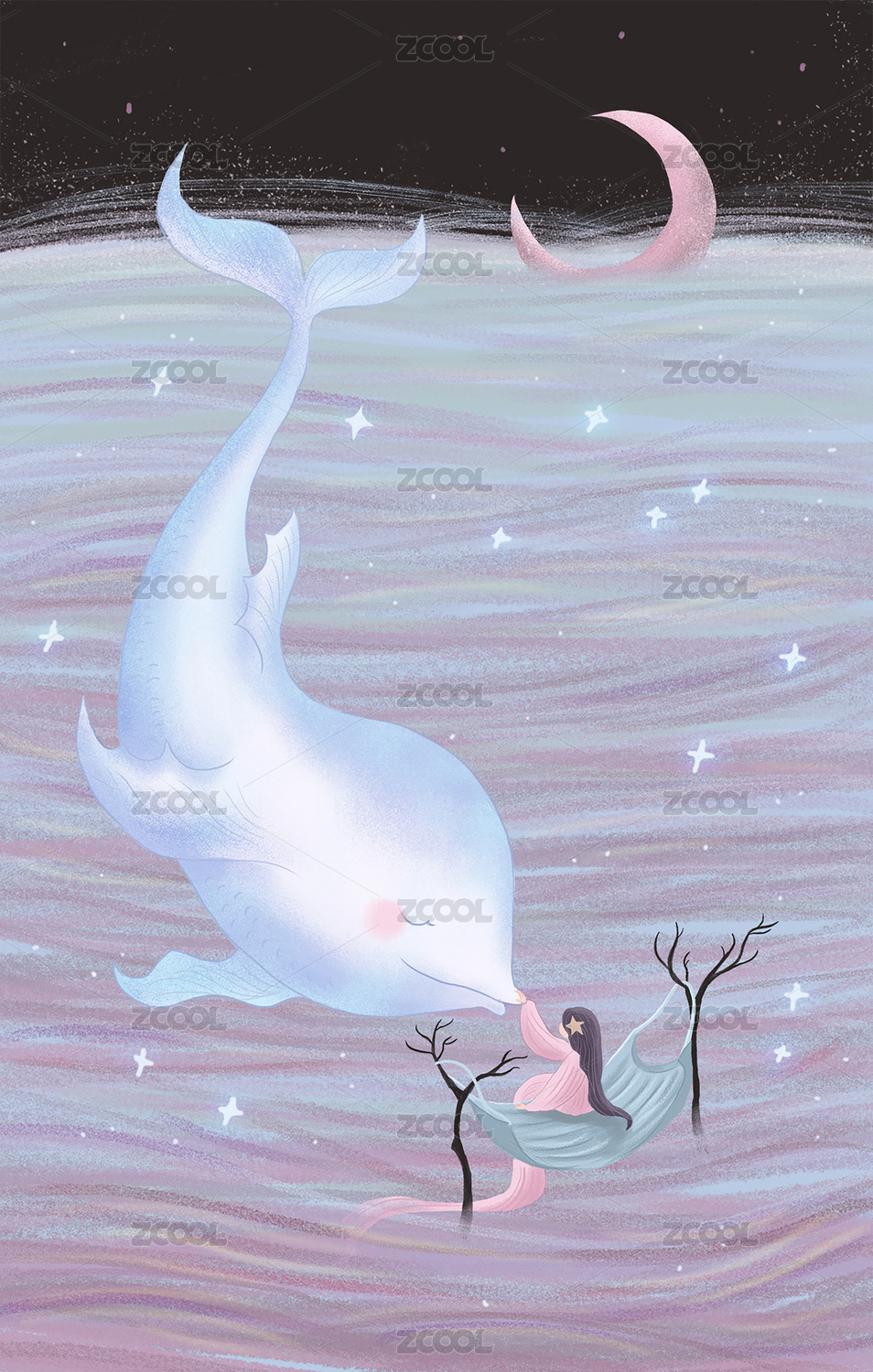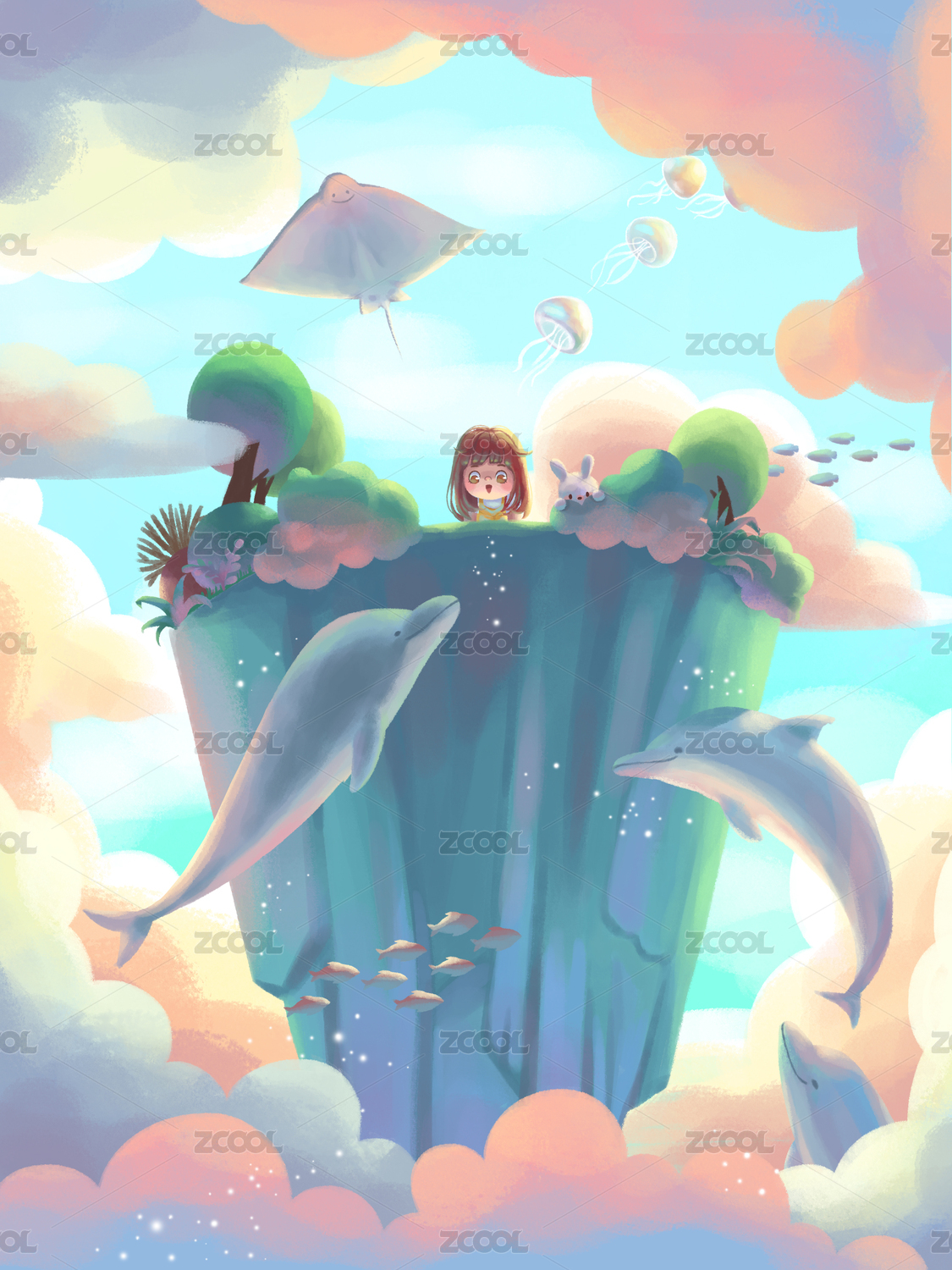 唯美,卡通,商业,插画,可爱,深海,海豚,气泡,美人鱼,海报
