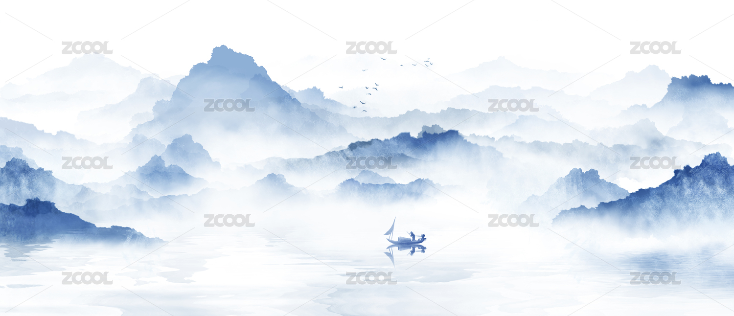 插画,水墨画,中国风,中国画,山水,山水画,风景,山脉,鸟类,自然