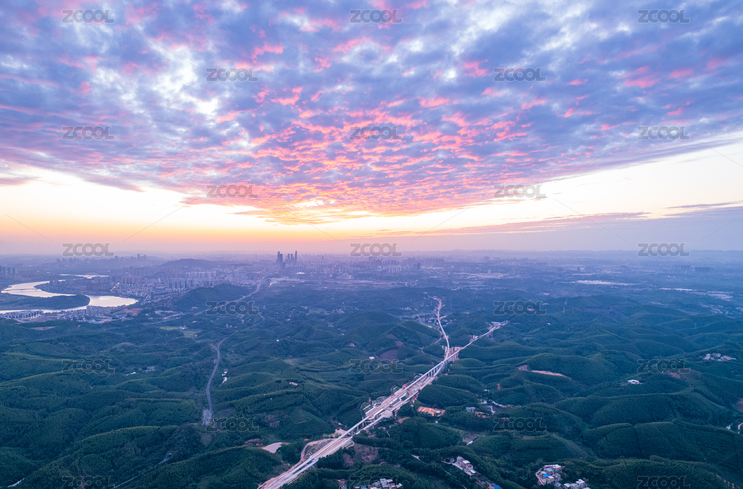 中国南宁乡村青山与夕阳晚霞火烧云航拍风光