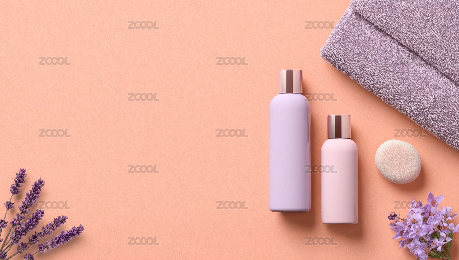 极简,设计,现代,背景,护理用品,平铺,浴室,瓶子,毛巾,刷子