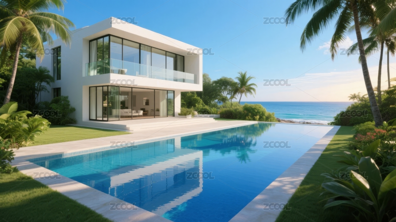 夏季,户外,清新,蓝天,宁静,海岛,别墅,度假,豪华,海景