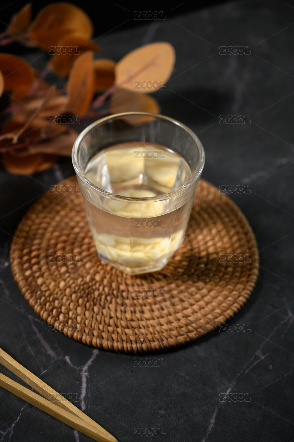 桌面上的杯子里的的甘甜可口的西洋参茶