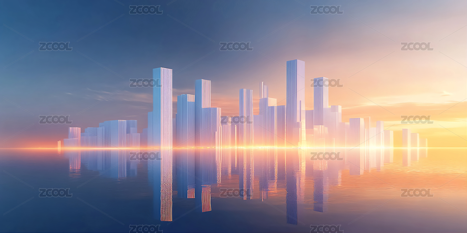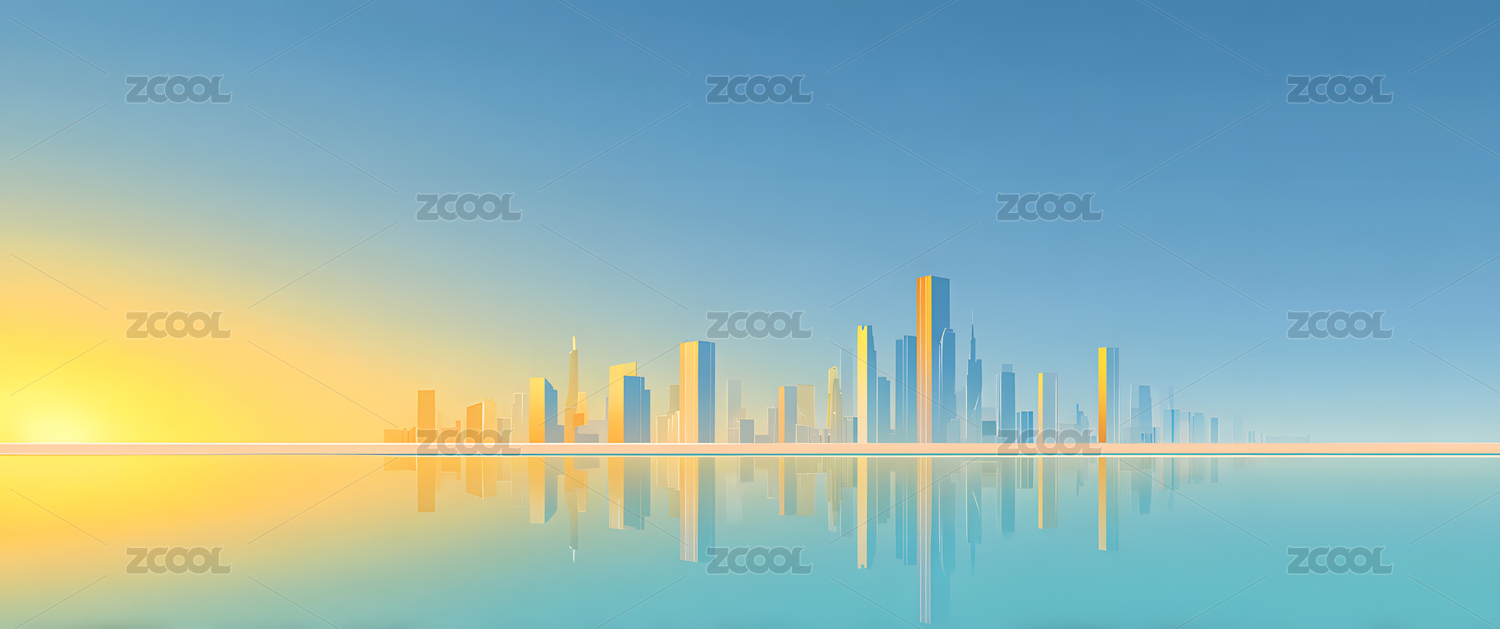 夕阳下的城市天际线倒影