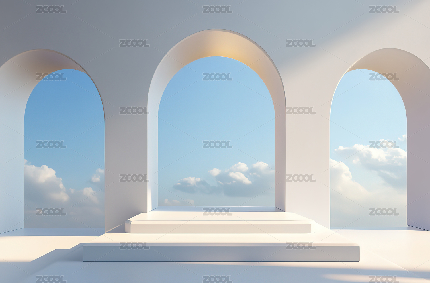 阳光透过拱门的室内空间