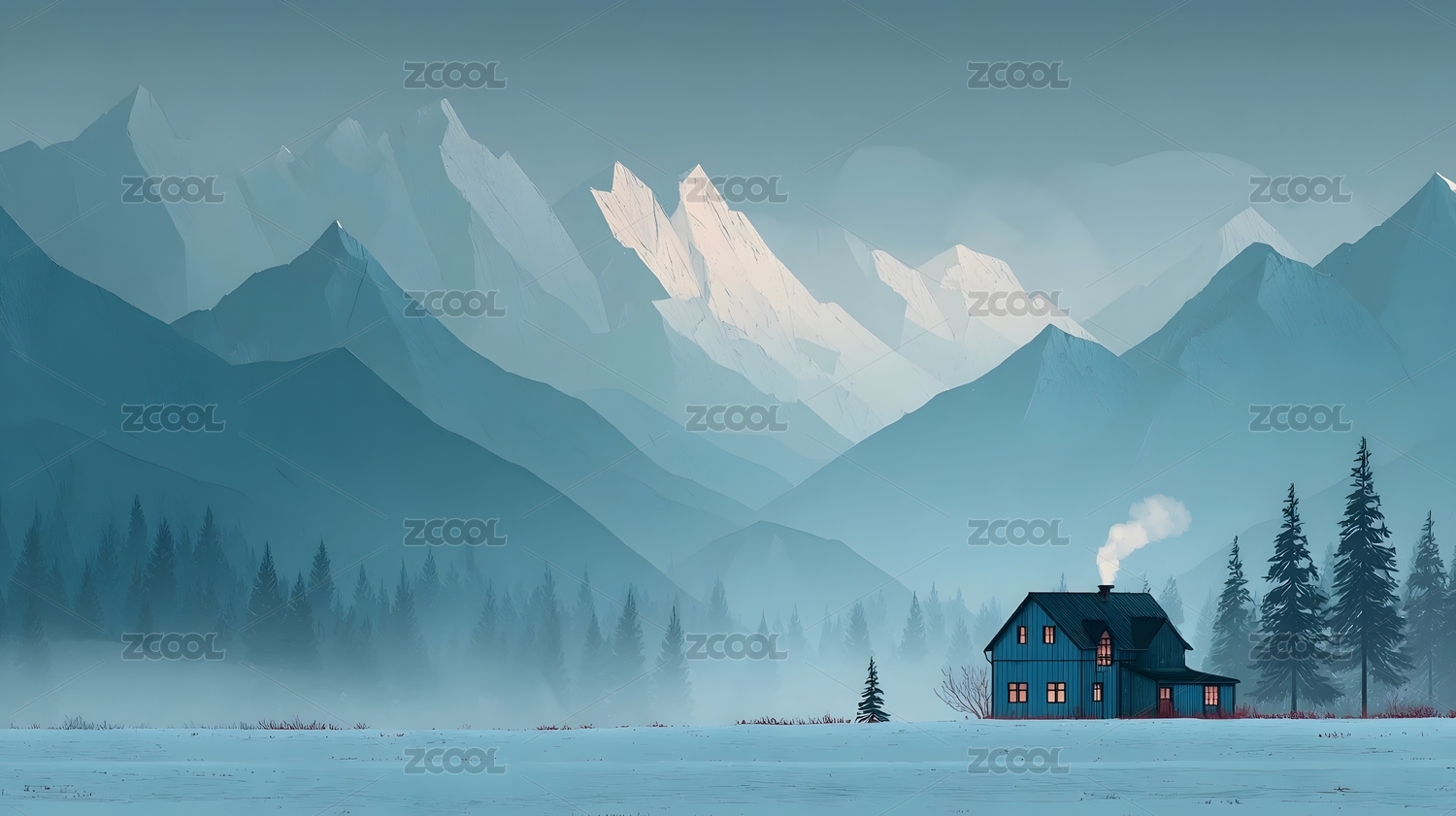 蓝色,温暖,自然,天空,美丽,冬季,小屋,树木,宁静,风景
