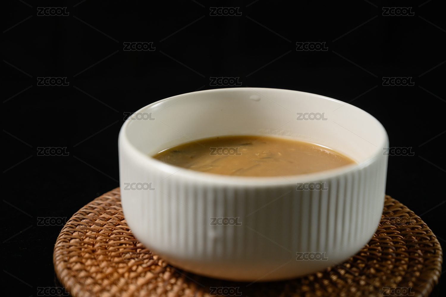 桌面上的碗里的美味可口的牛奶炖桃胶