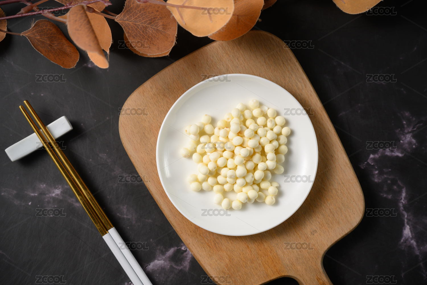 桌面上的盘子里的美味可口的新鲜芡实