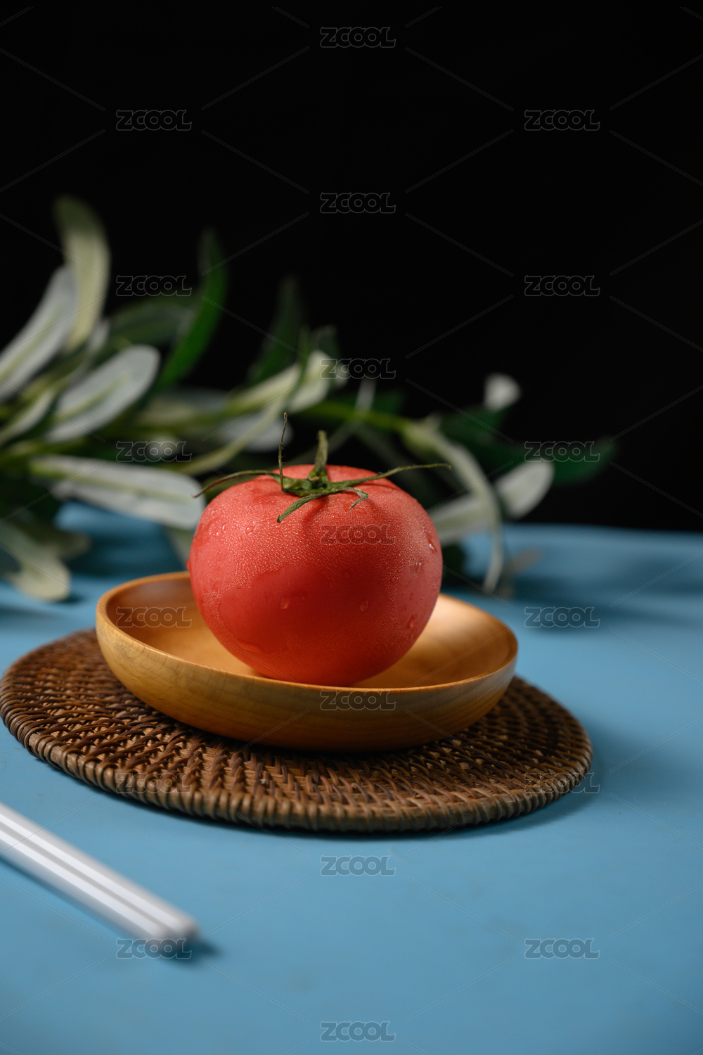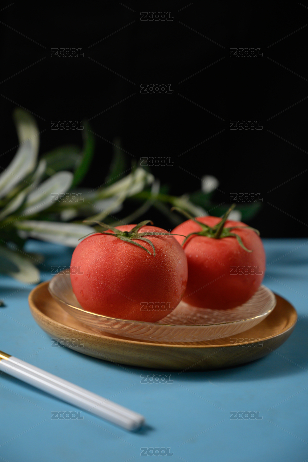 桌面上的盘子里的美味可口的新鲜西红柿