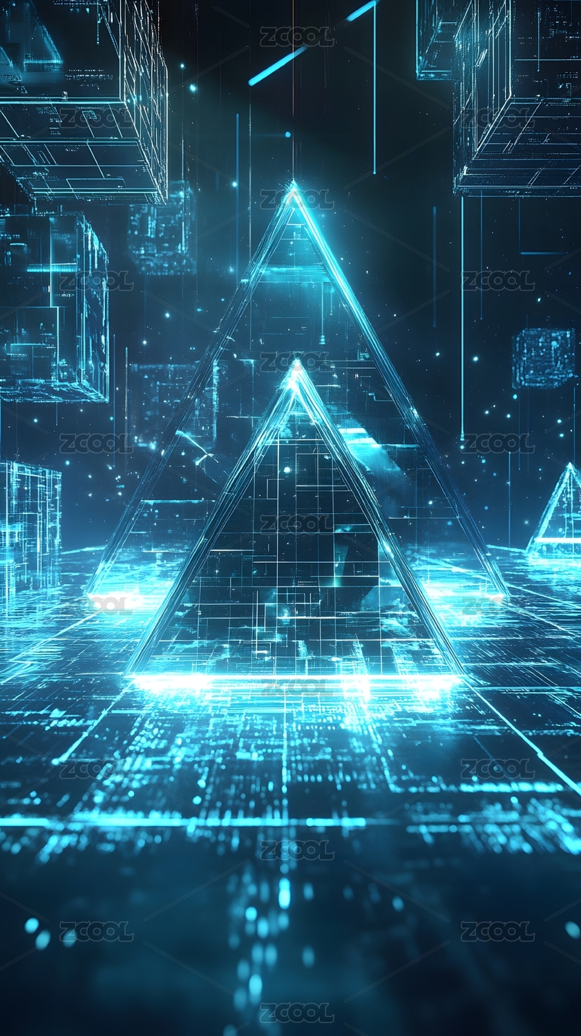 蓝色发光三角形背景
