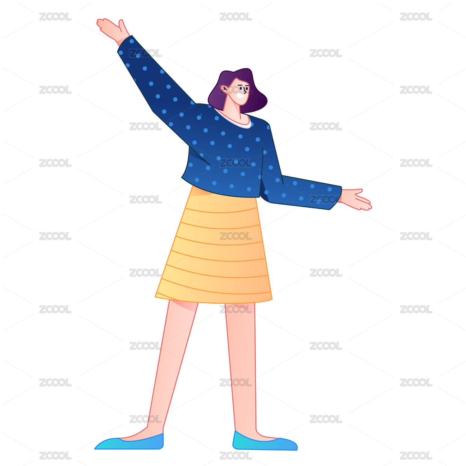 人物站姿肢体动作自信展示矢量扁平渐变插画