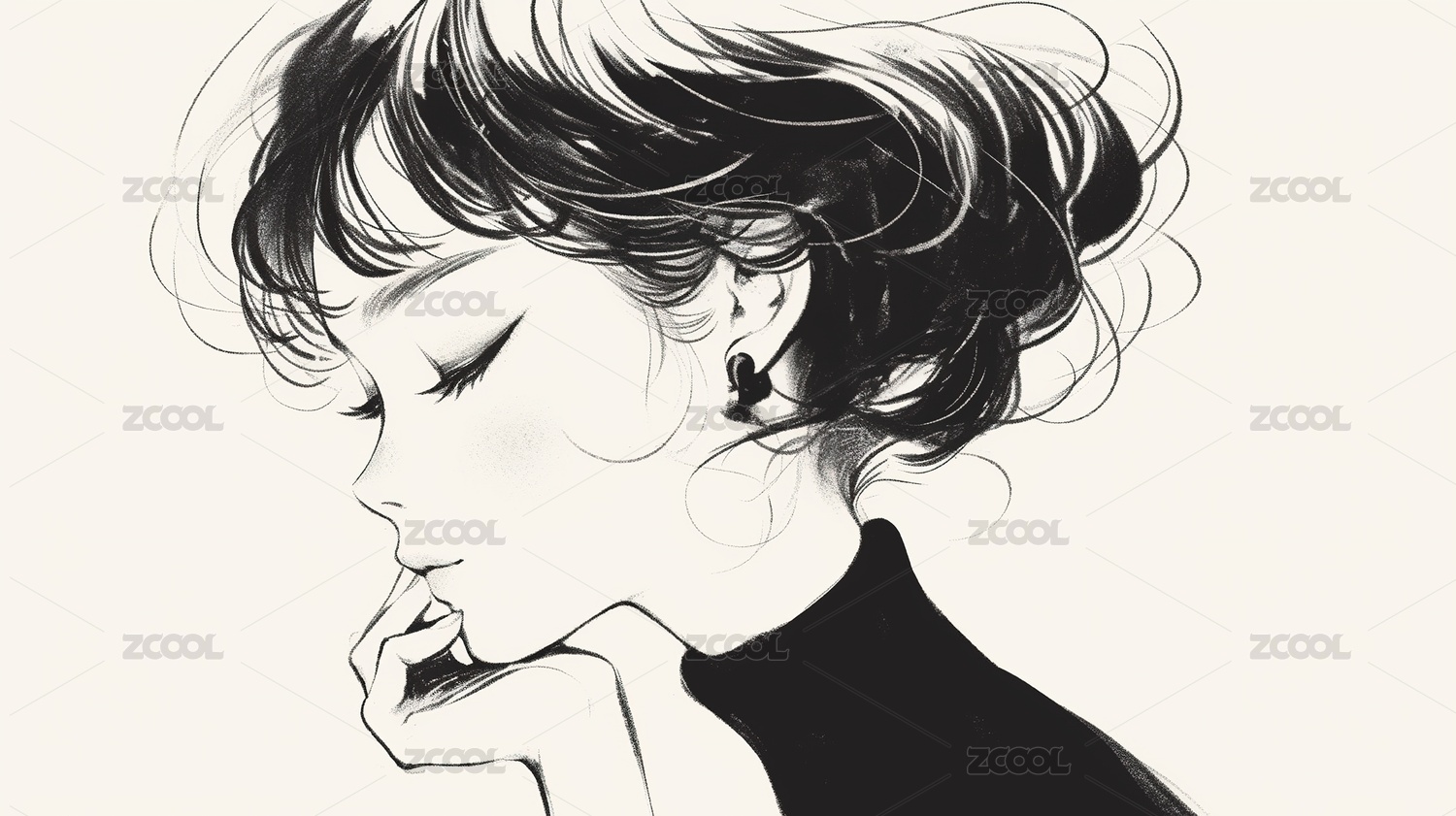 线条,美人,插画,图案,艺术,人物,女人,时尚,背景,黑白