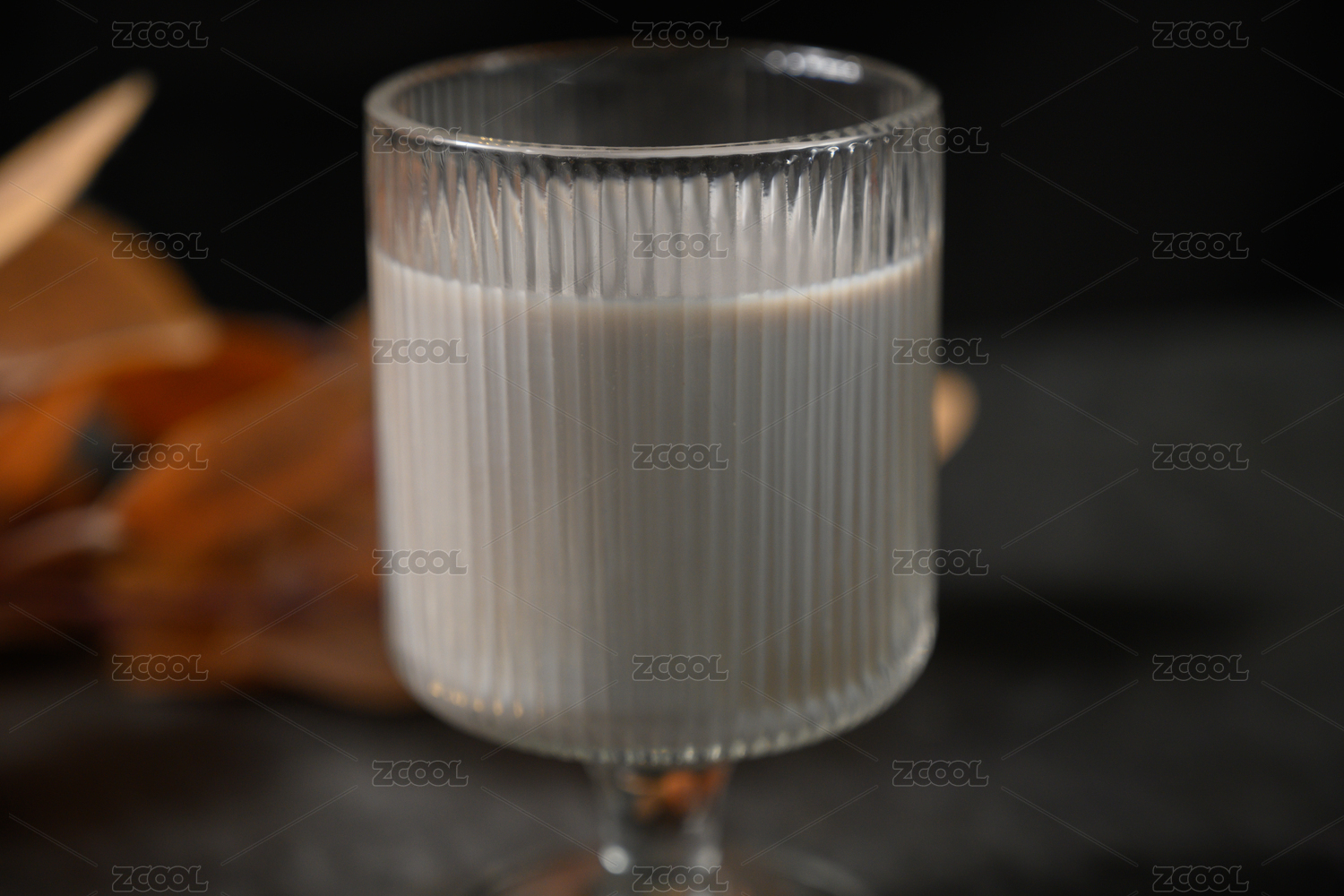 桌面上的杯子里的美味可口的黑豆浆