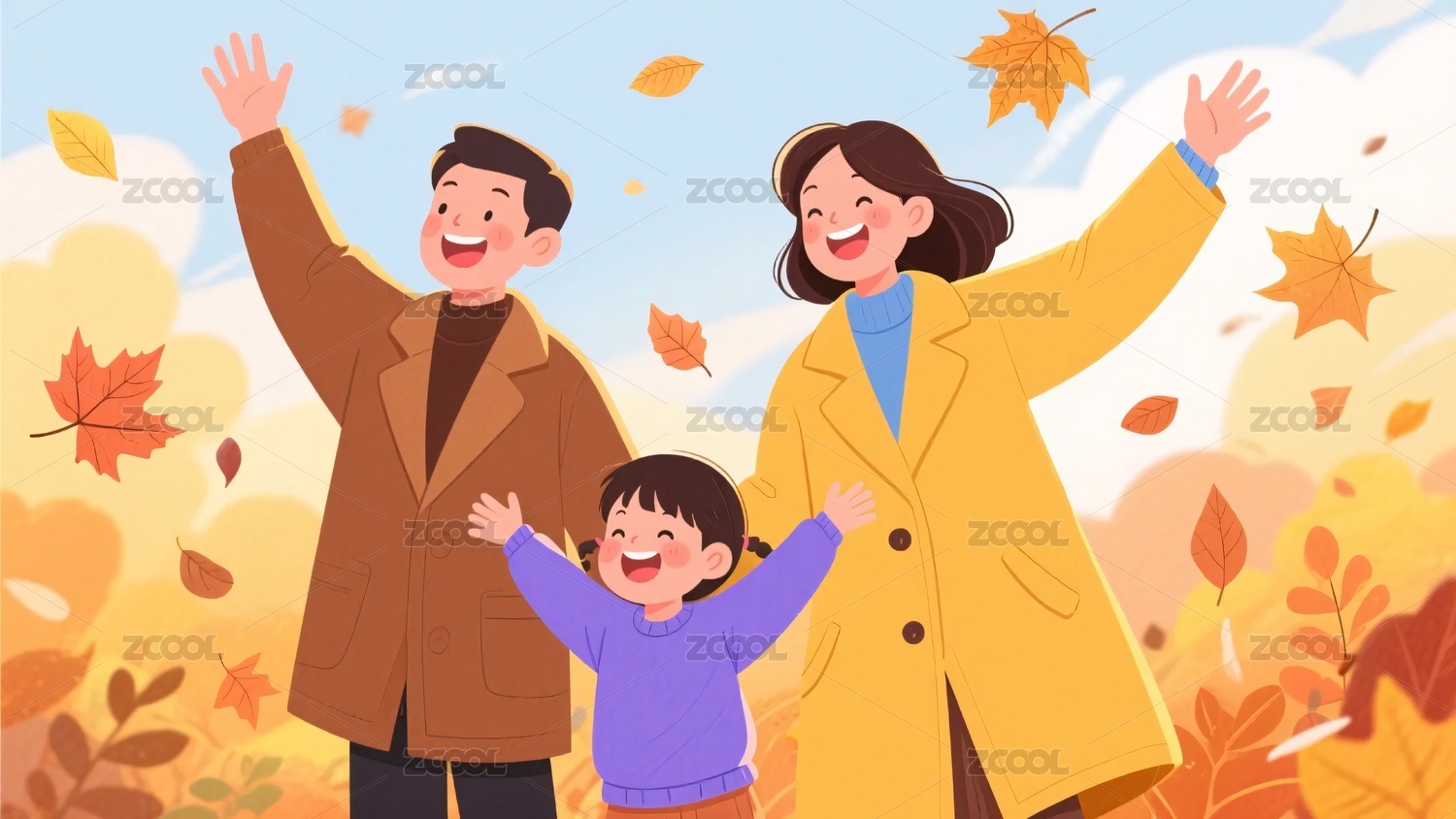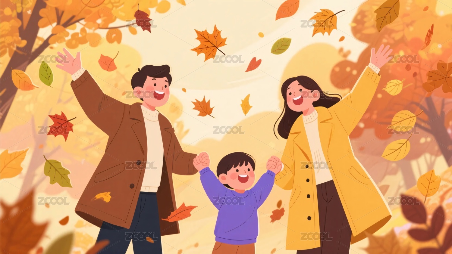 秋天秋游立秋秋分户外活动运动卡通漫画插画