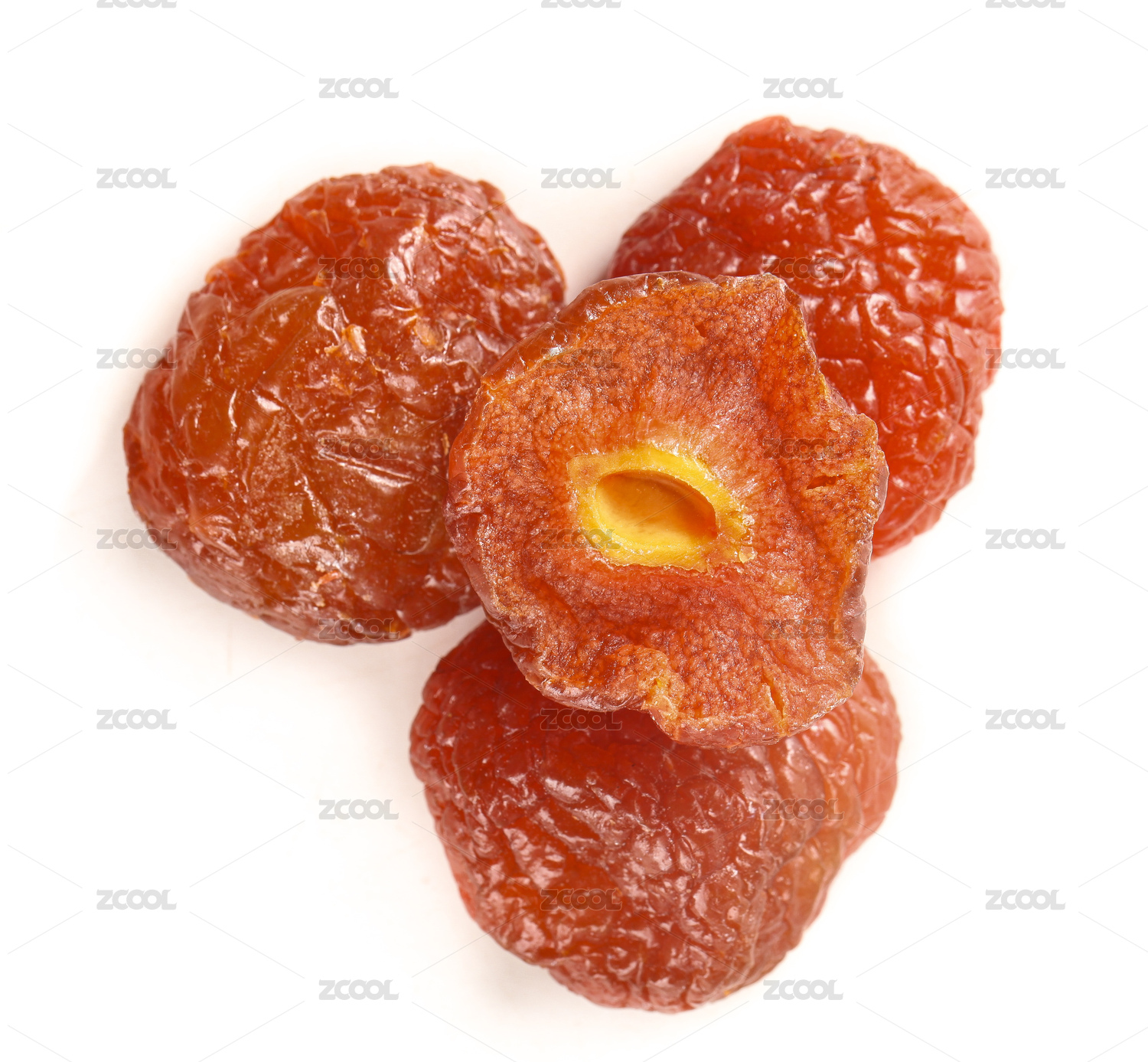 摆放在白色背景上的果脯蜜饯