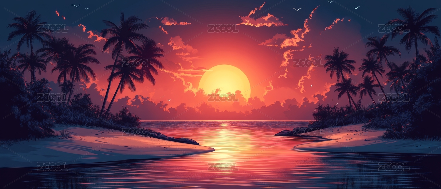 数码日落海滩场景图形