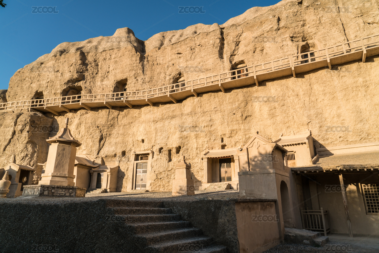 甘肃酒泉莫高窟的古建筑与岩壁