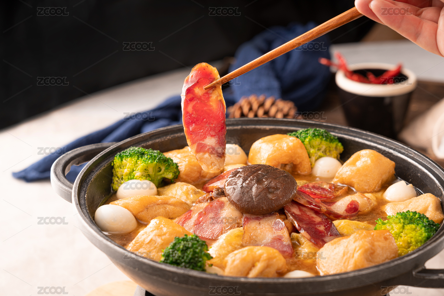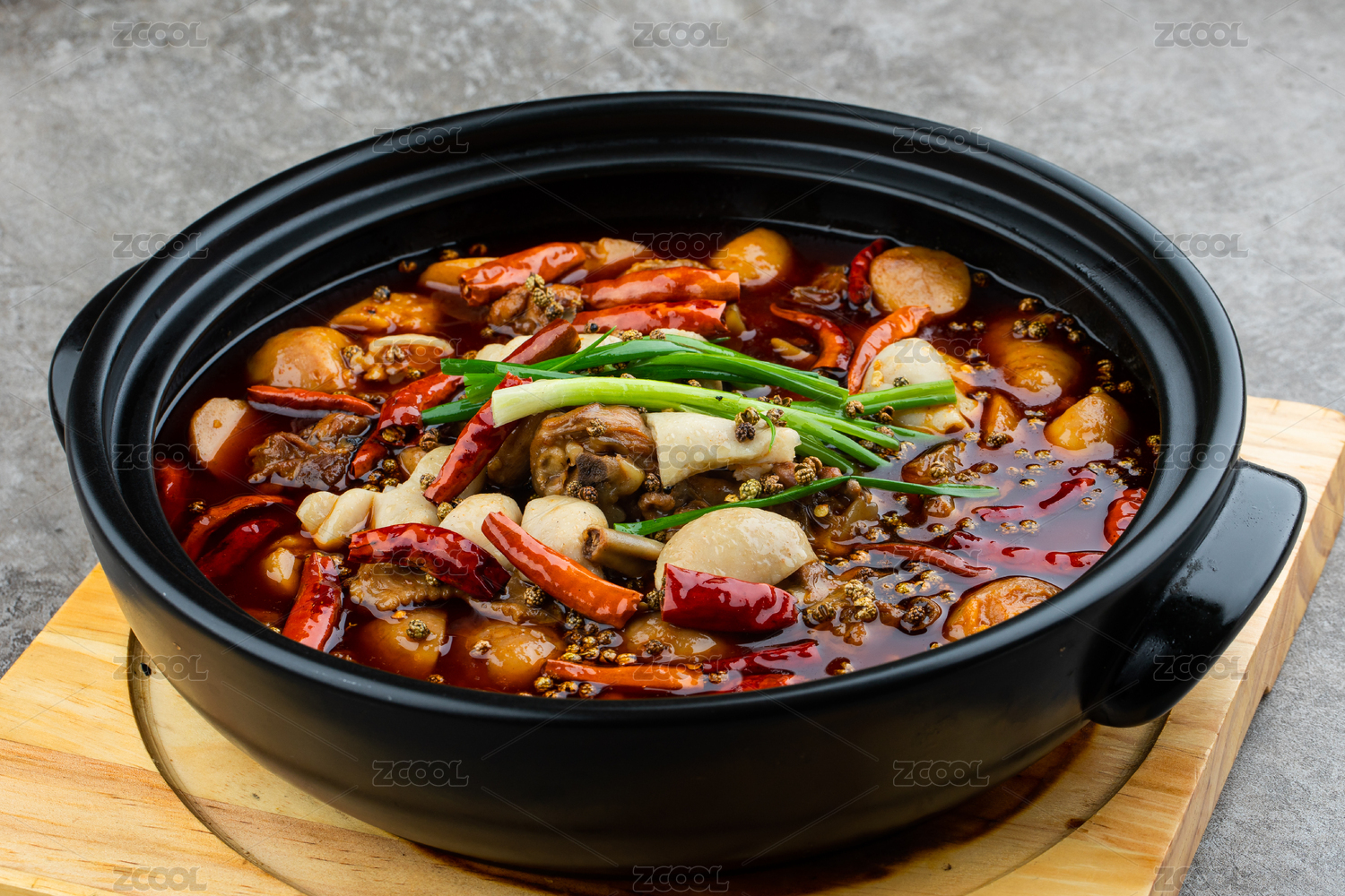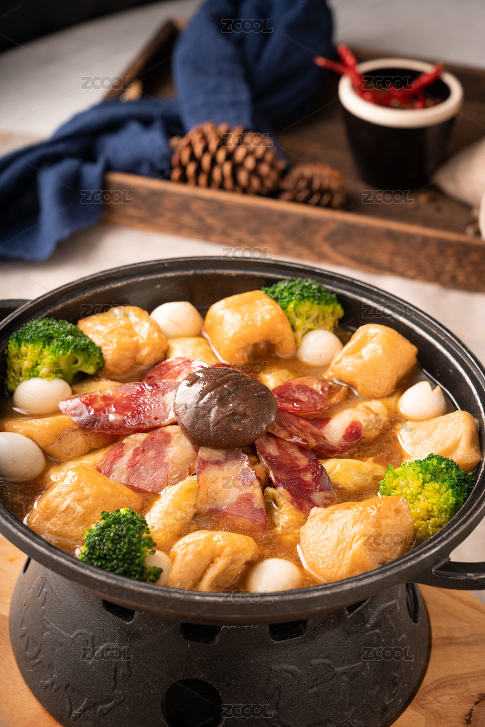 砂锅牛杂牛肉煲汤冒烟的氛围图