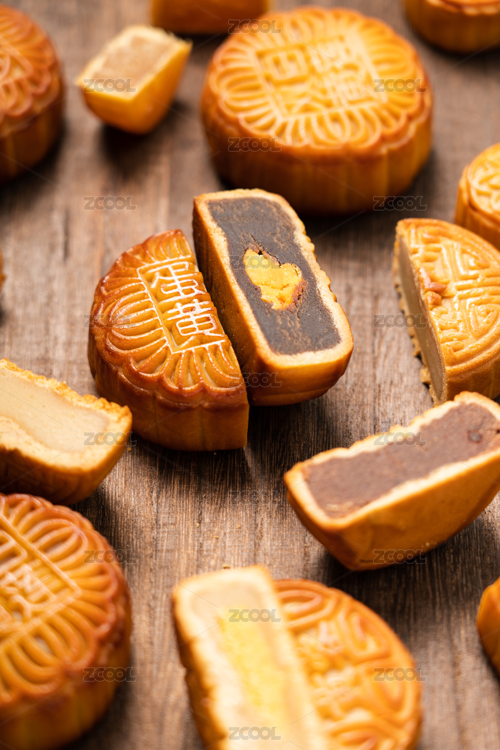 切开的中秋节美食糕点——月饼