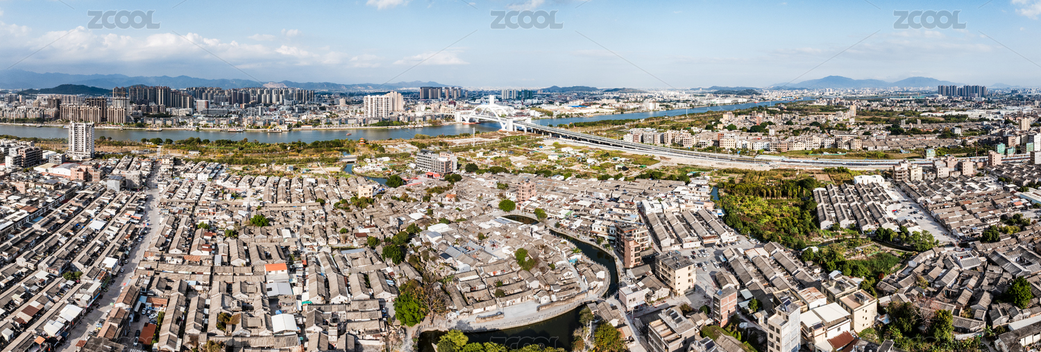 珠海斗门井岸黄杨河城市风光航拍全景图