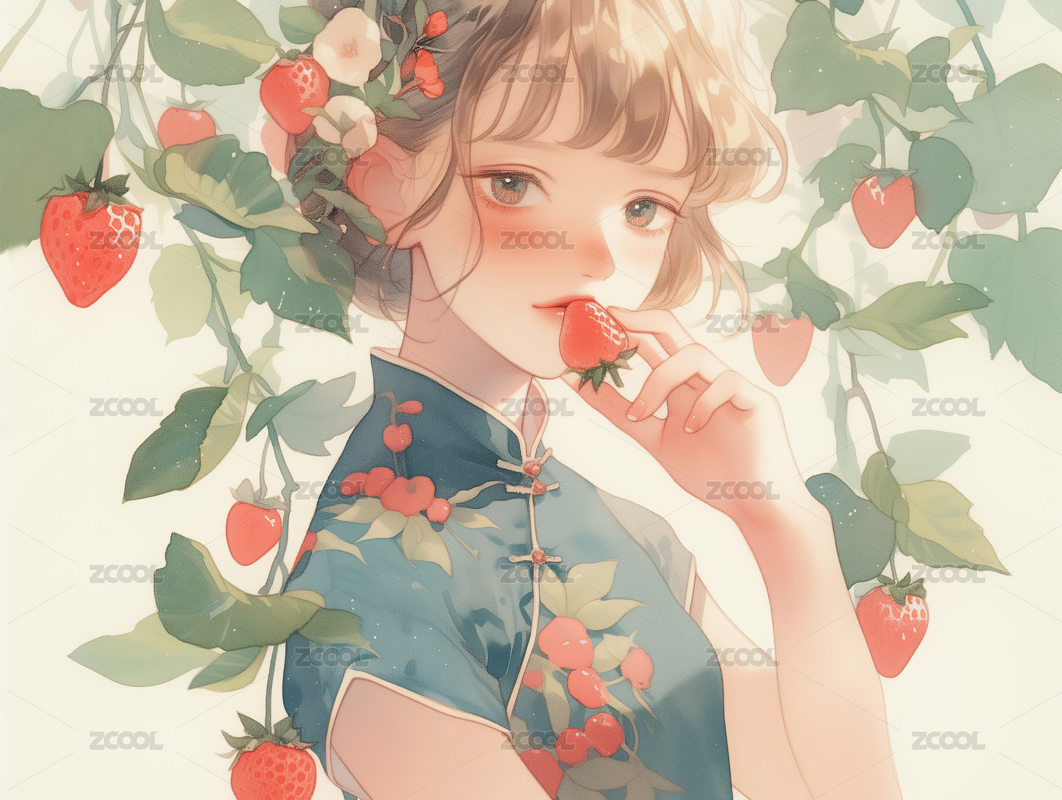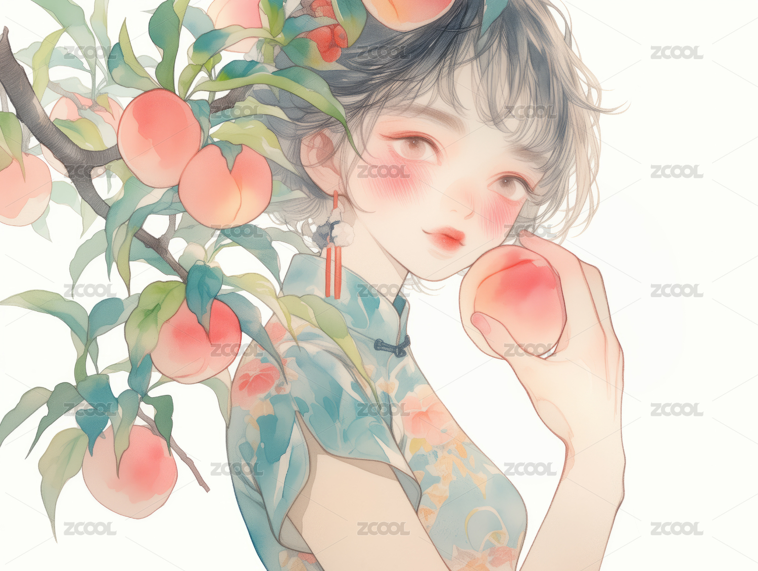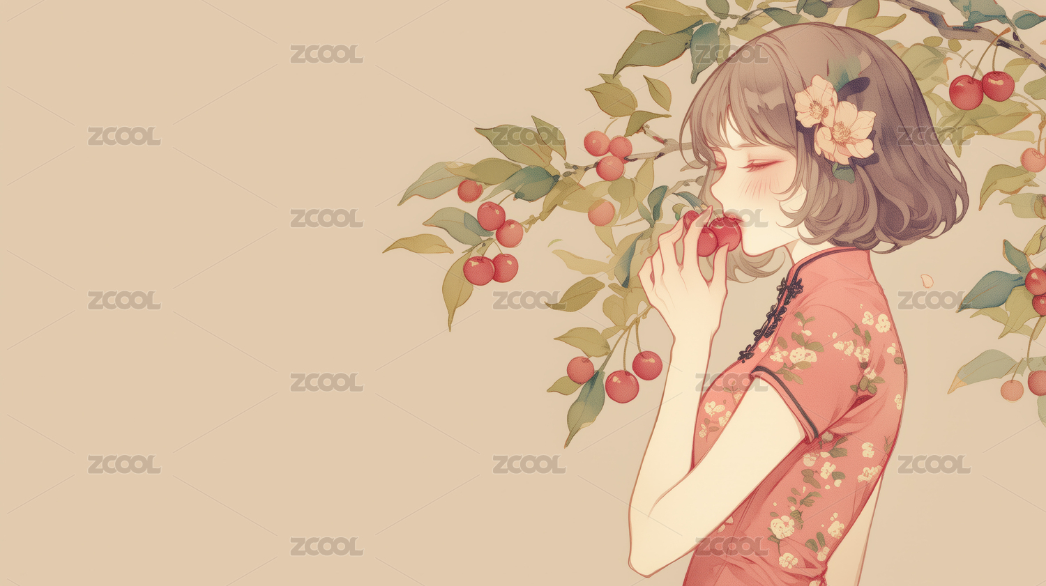 扁平,肌理,插画,绘画,清新,一个人,女孩,女生,人,治愈