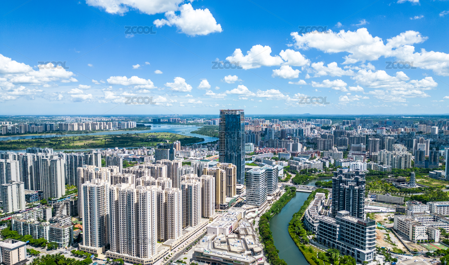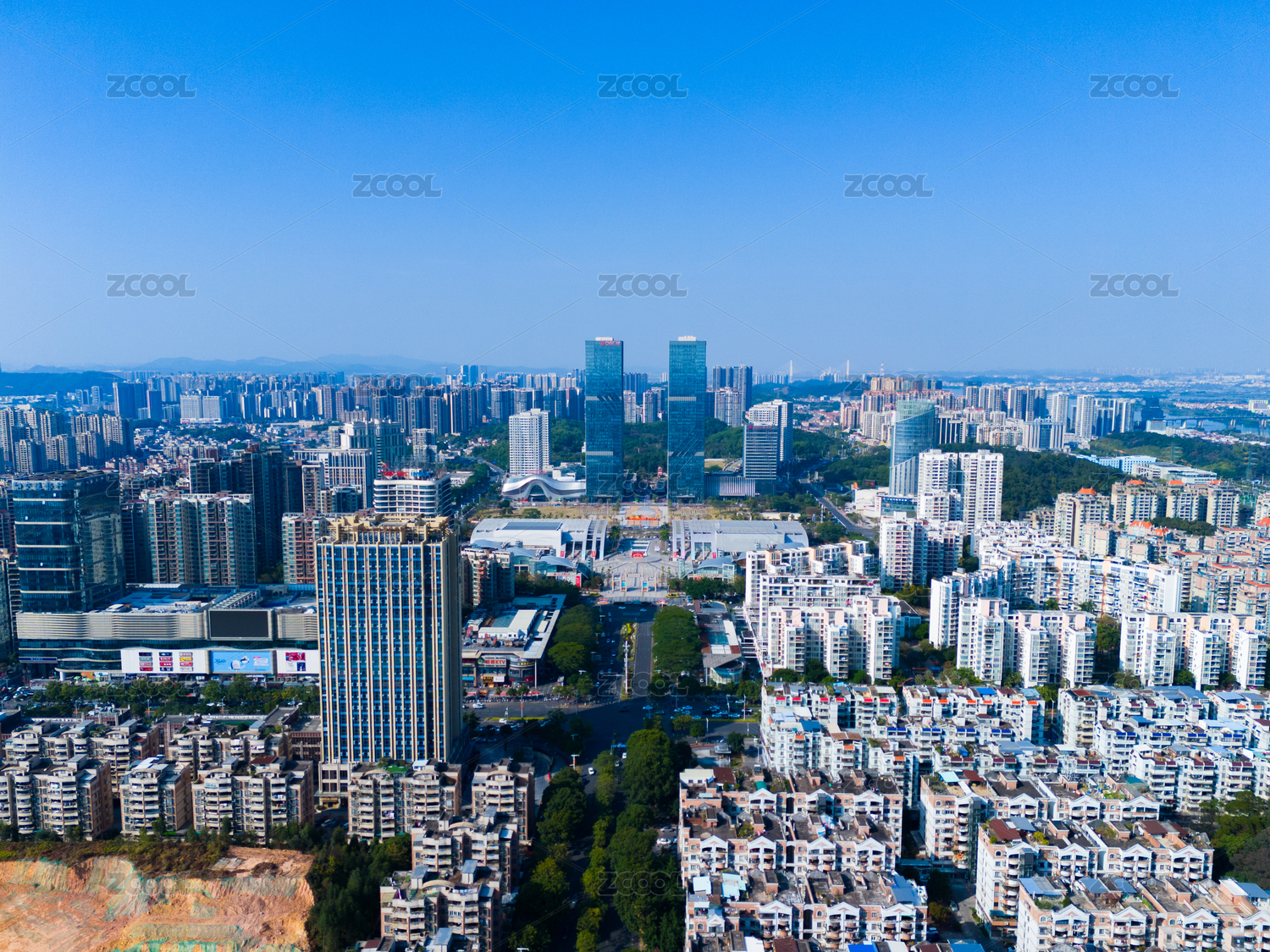 江门蓬江区万达广场建筑蓝天航拍拍摄