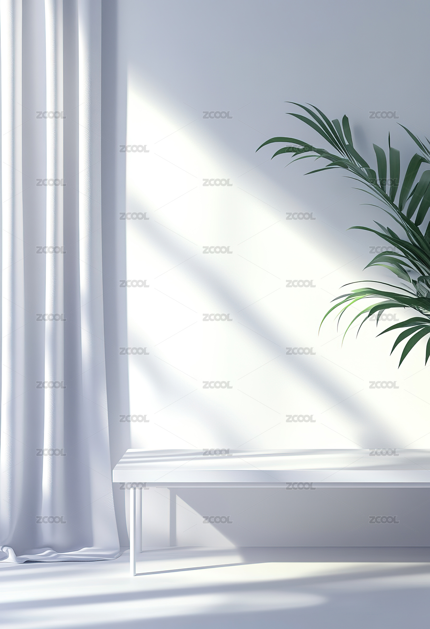 白色,简约,极简,桌子,圆桌,植物,绿色植物,窗帘,白窗帘,室内