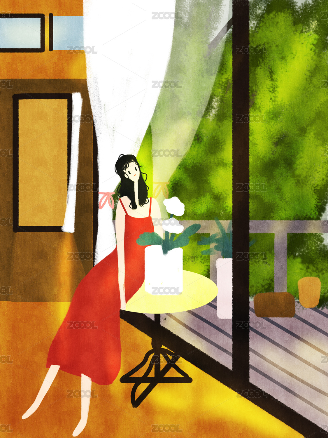 插画,小清新,美女,女人,时尚,少女,连衣裙,漂亮,年轻,感性