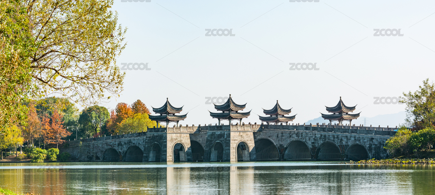 中国浙江萧山湘湖旅游度假区地标桥梁四亭桥