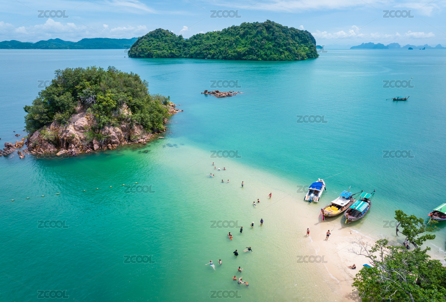 泰国甲米帕别岛热带岛屿沙滩海滨风光航拍
