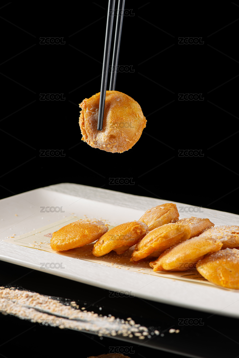 桌面上的盘子里的美味可口的冬菇天妇罗