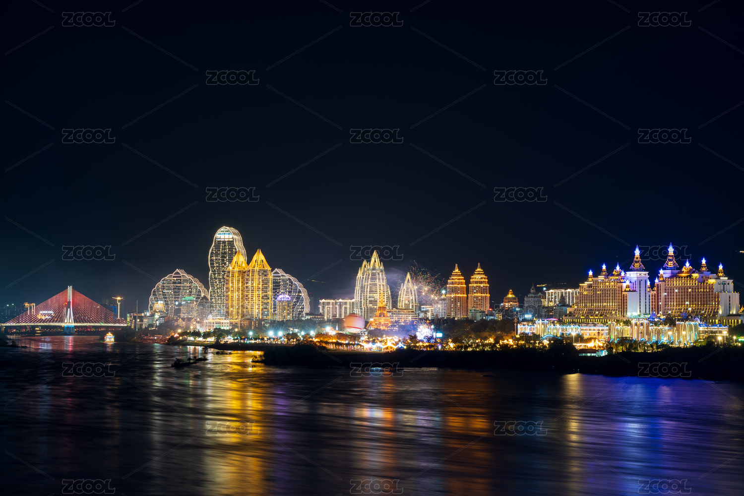 云南,傣族,告庄,地标,城市,夜晚,夜景,天际线,市中心,市区