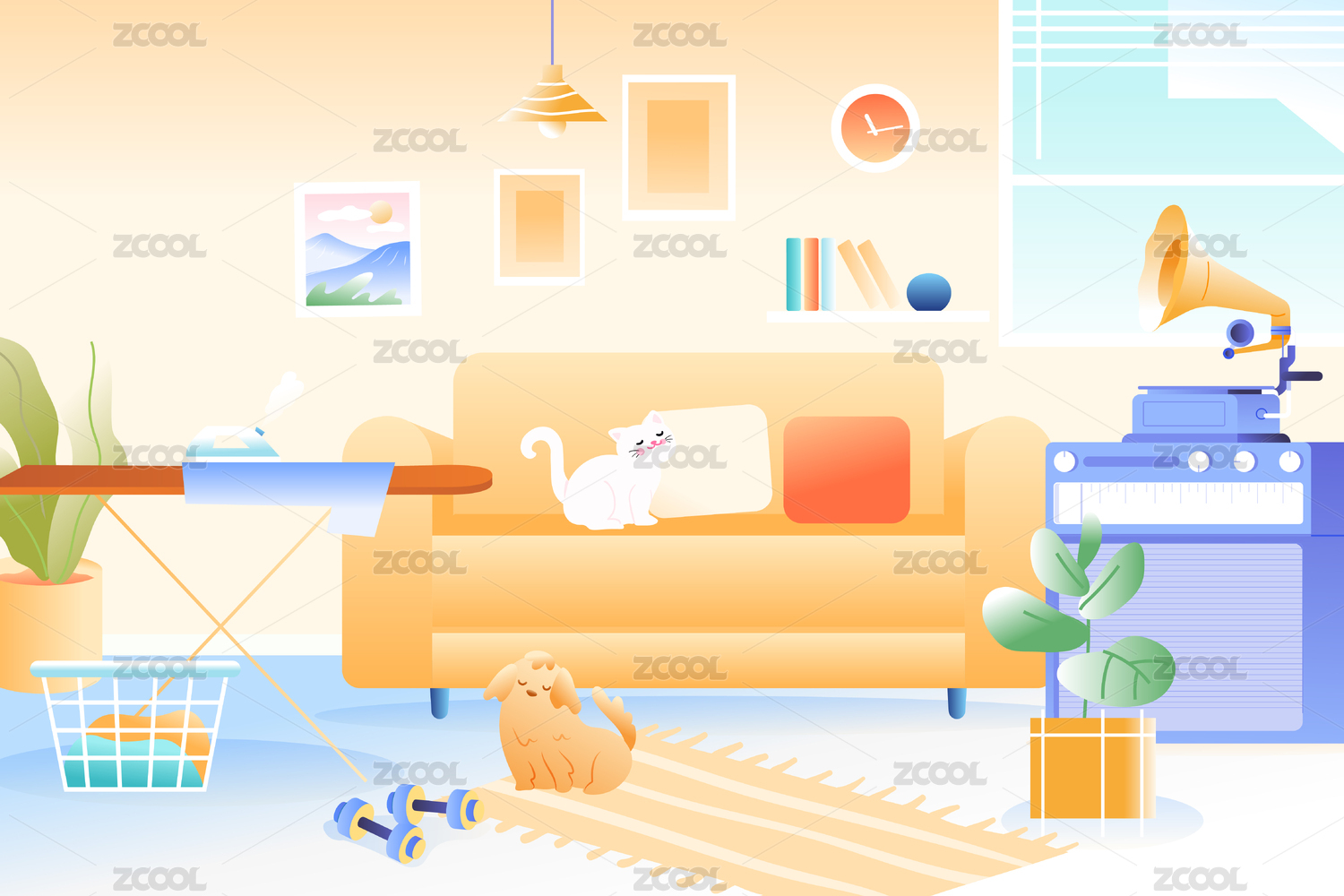人悠闲居家休息时尚简约抽象卡通艺术插画