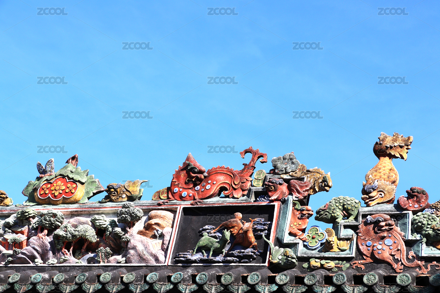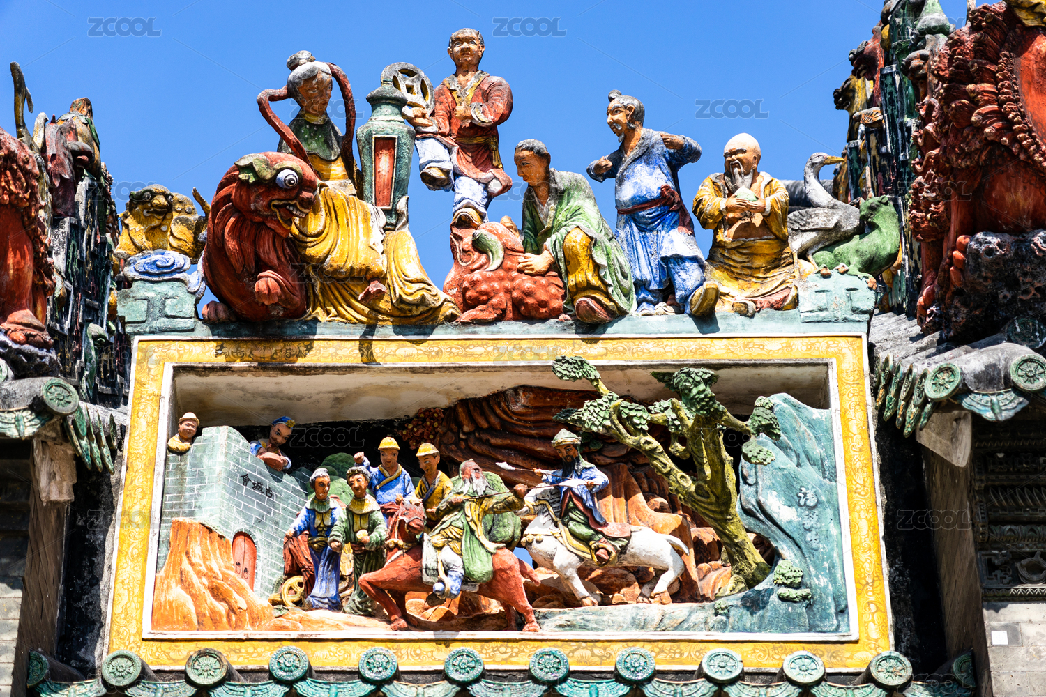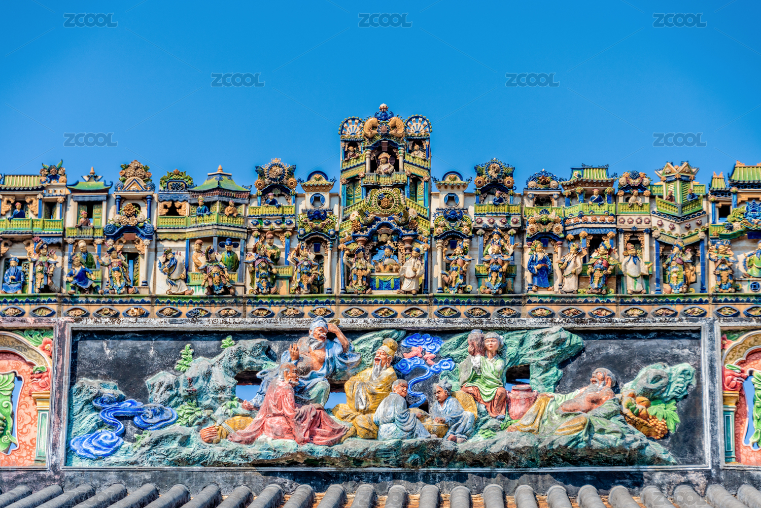中国广州陈家祠岭南建筑屋顶灰塑陶塑