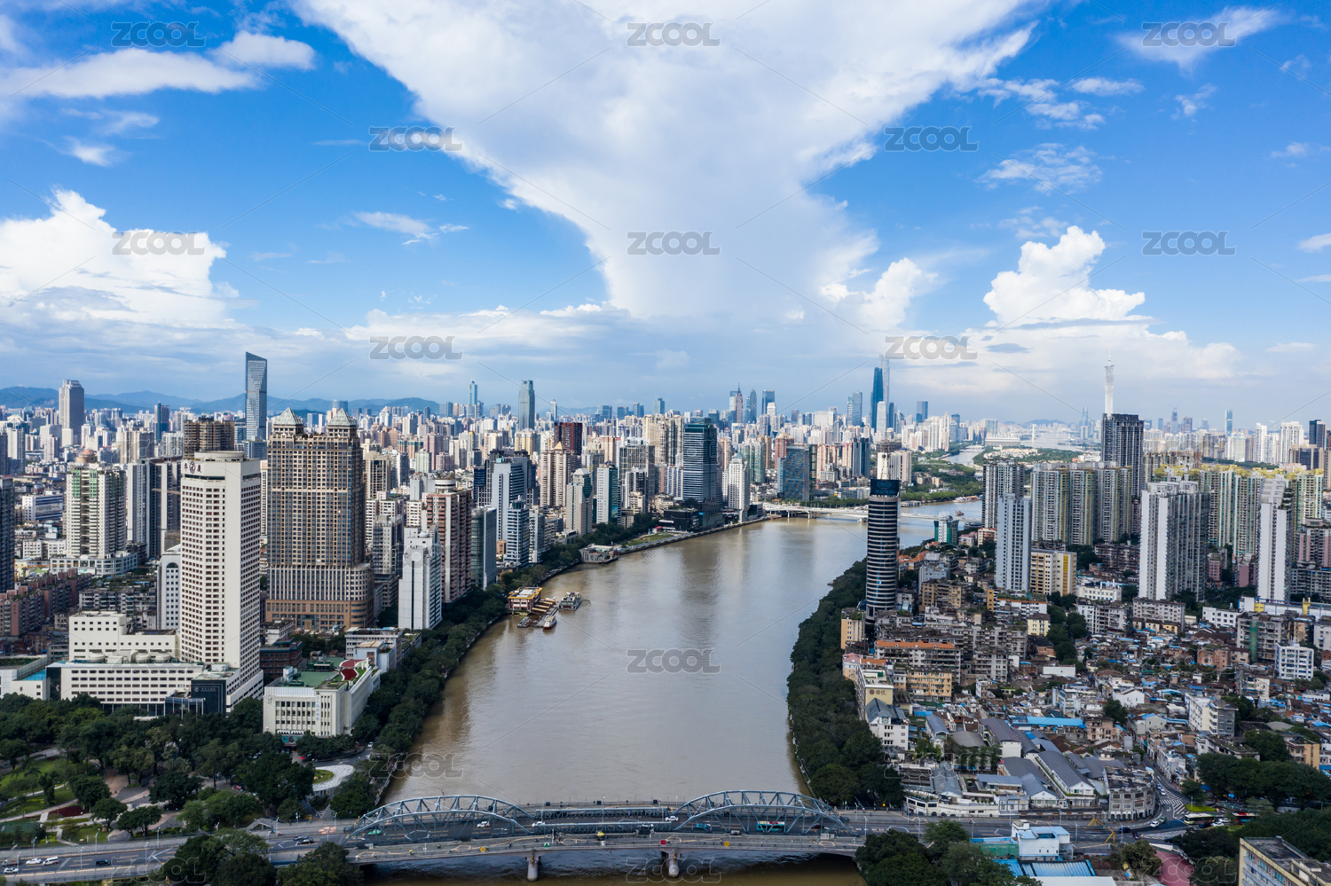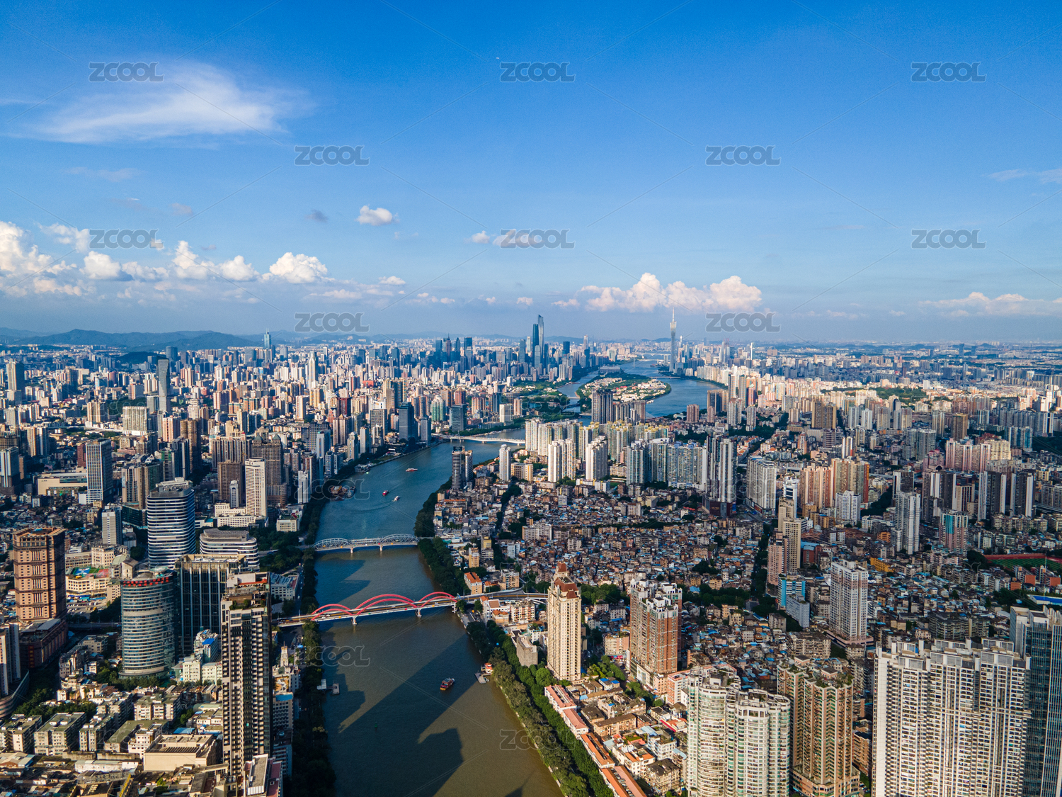 中国广州城市风光,珠江,白鹅潭及珠江两岸