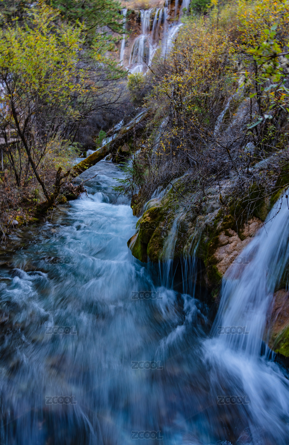 九寨沟秋色山间溪流瀑布