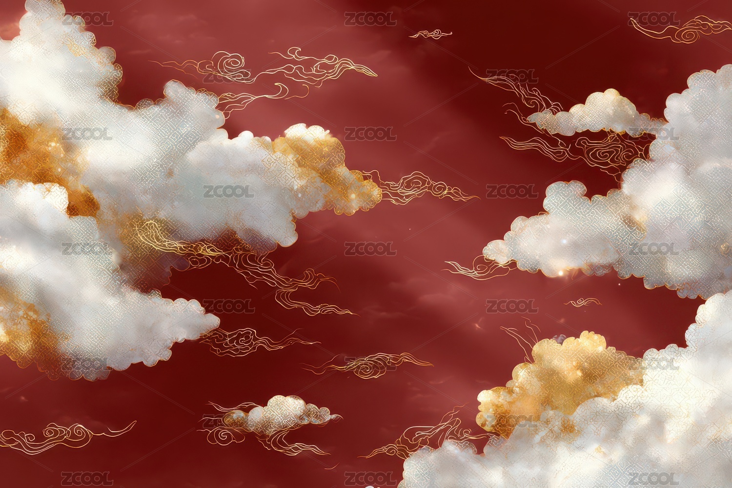 新年春节国潮祥云底纹传统祥云图案红色背景