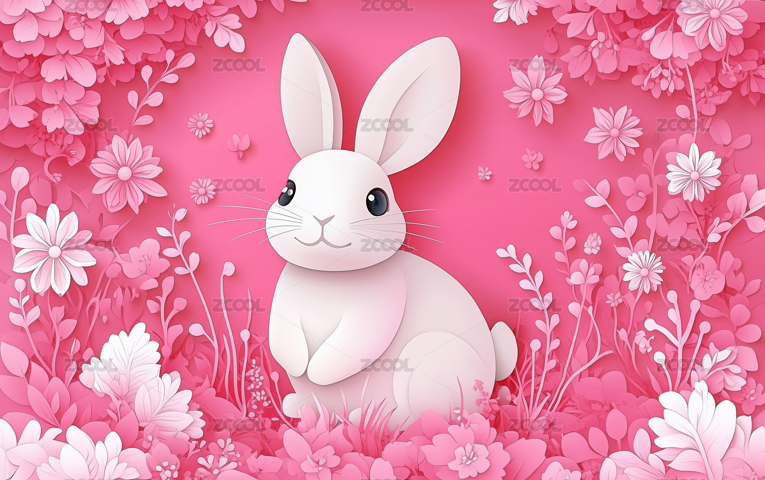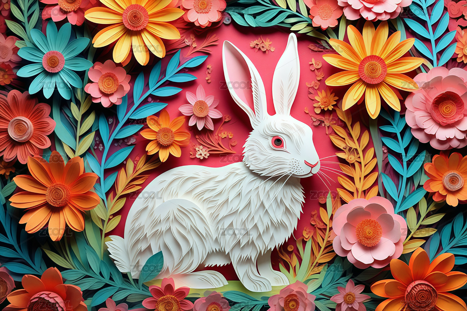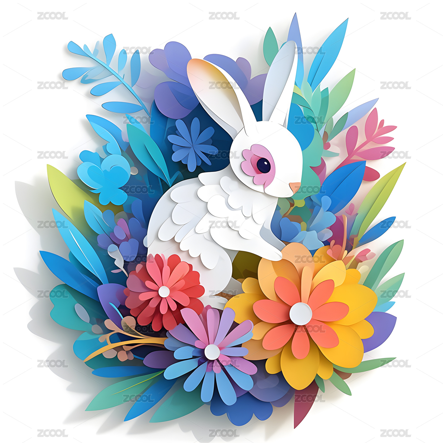 兔子,艺术,花朵,花草,植物,剪纸,工艺,插画,华丽,装饰