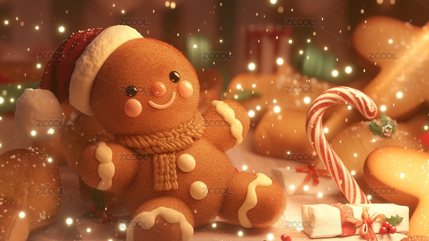 圣诞饼干姜饼人美食食物节日壁纸场景