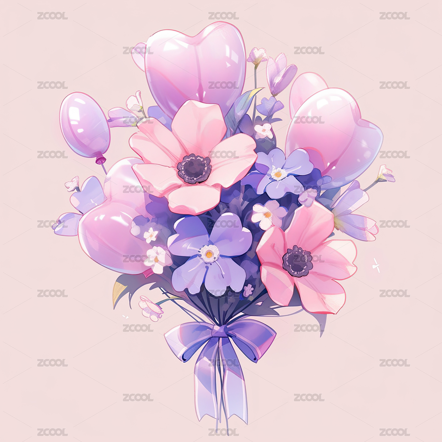 鲜花,花朵,蝴蝶结,插画,矢量,小清晰,花束,爱心,心形