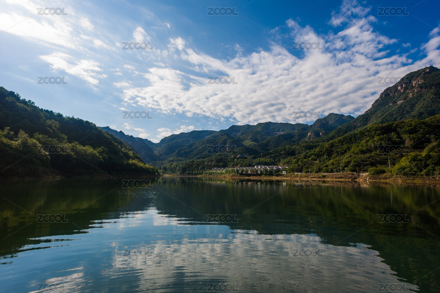 山上俯瞰大连庄河北峪夏季河谷风光全景图
