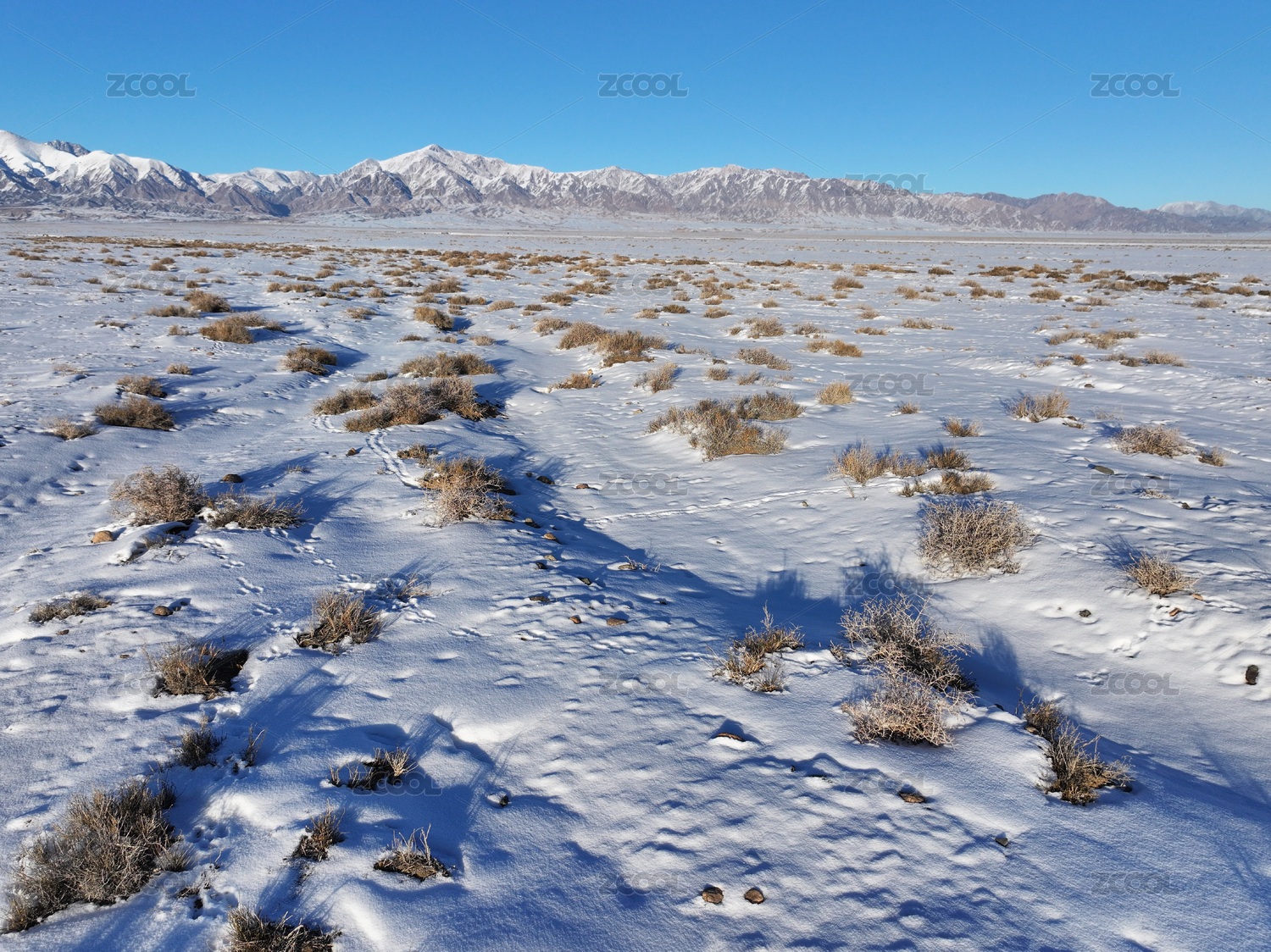 中国新疆被雪覆盖的草原与山