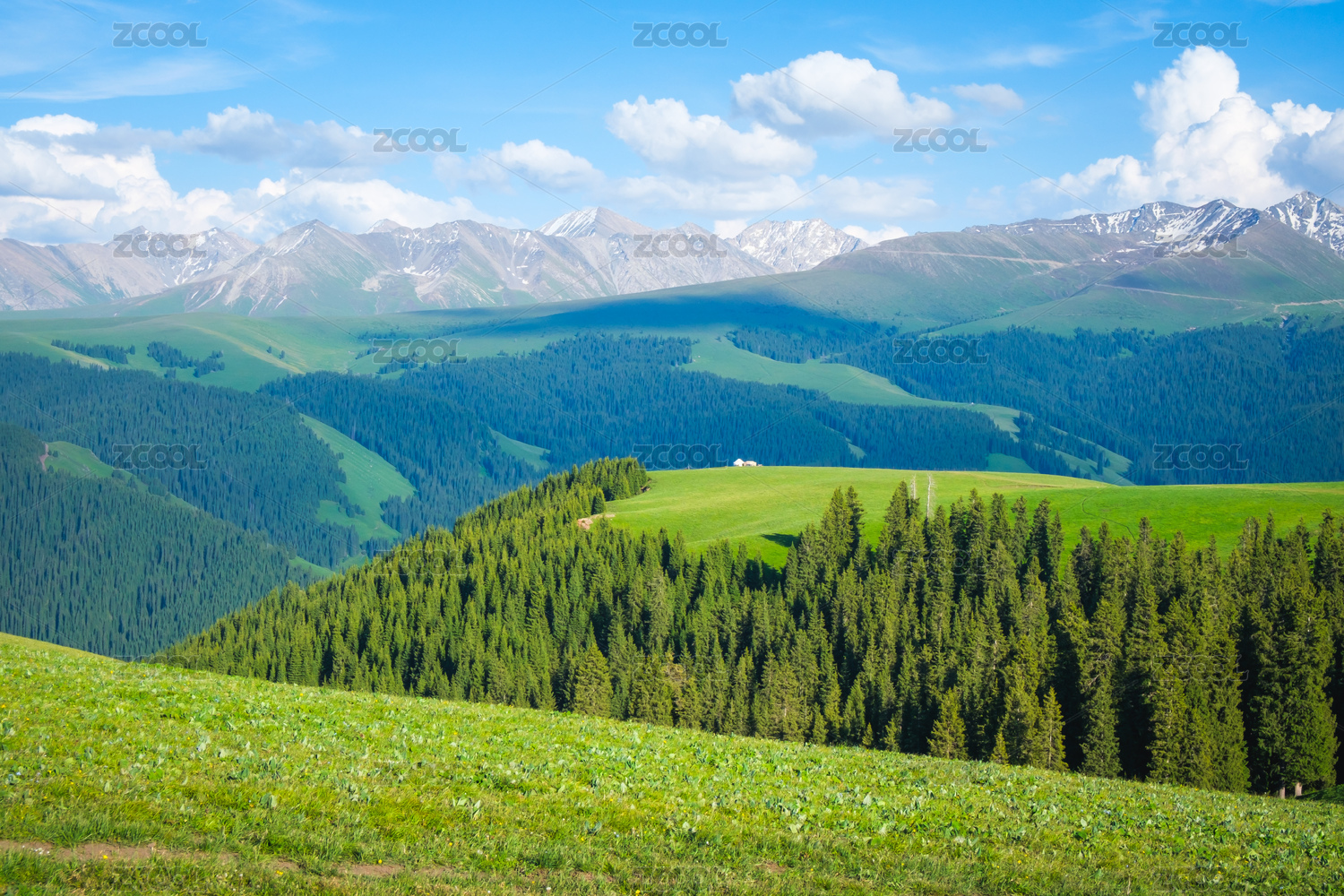 中国新疆独库公路沿途天山山脉森林草原自然风光