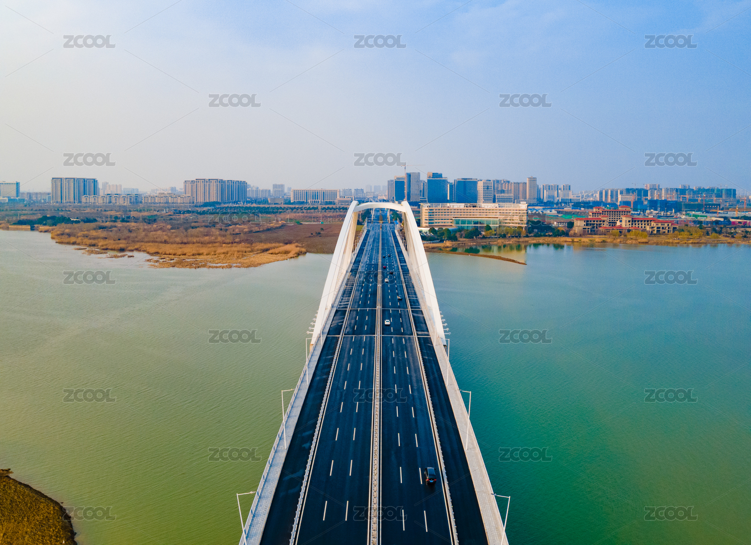 航拍武汉蔡甸区后官湖特大桥