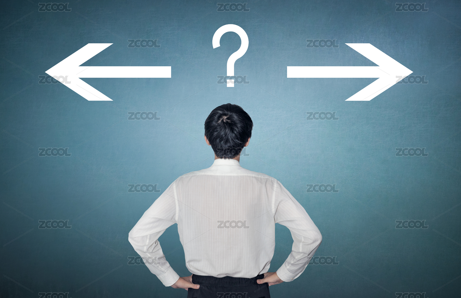 商务人士职场感觉思绪思路很乱问号不知所措抉择选择判断概念