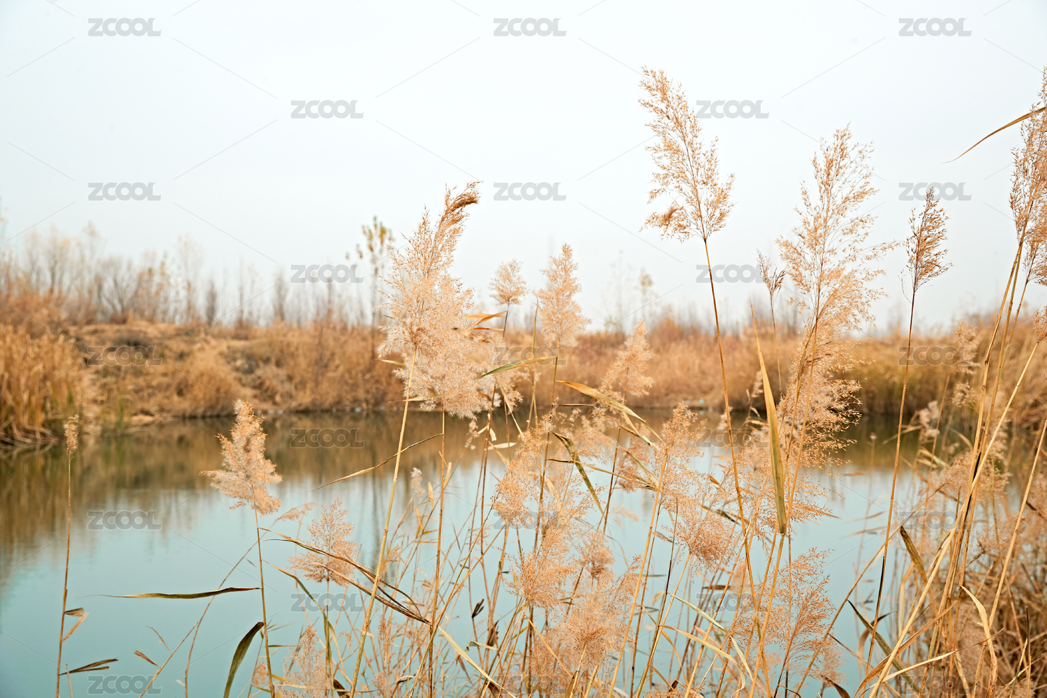 冬季河边的芦苇