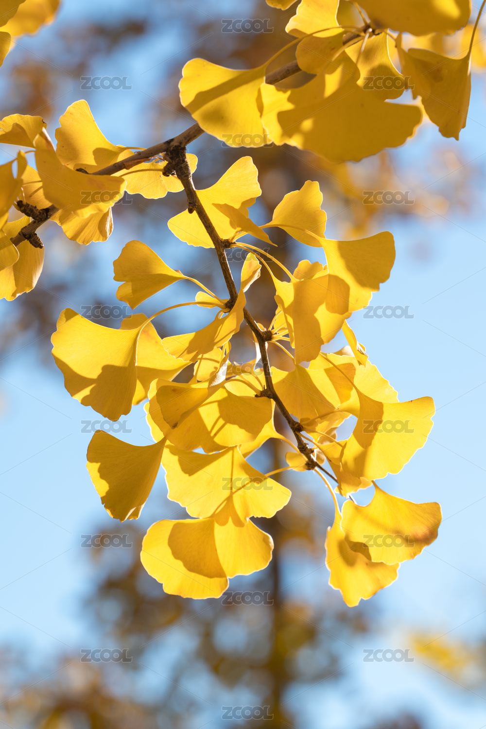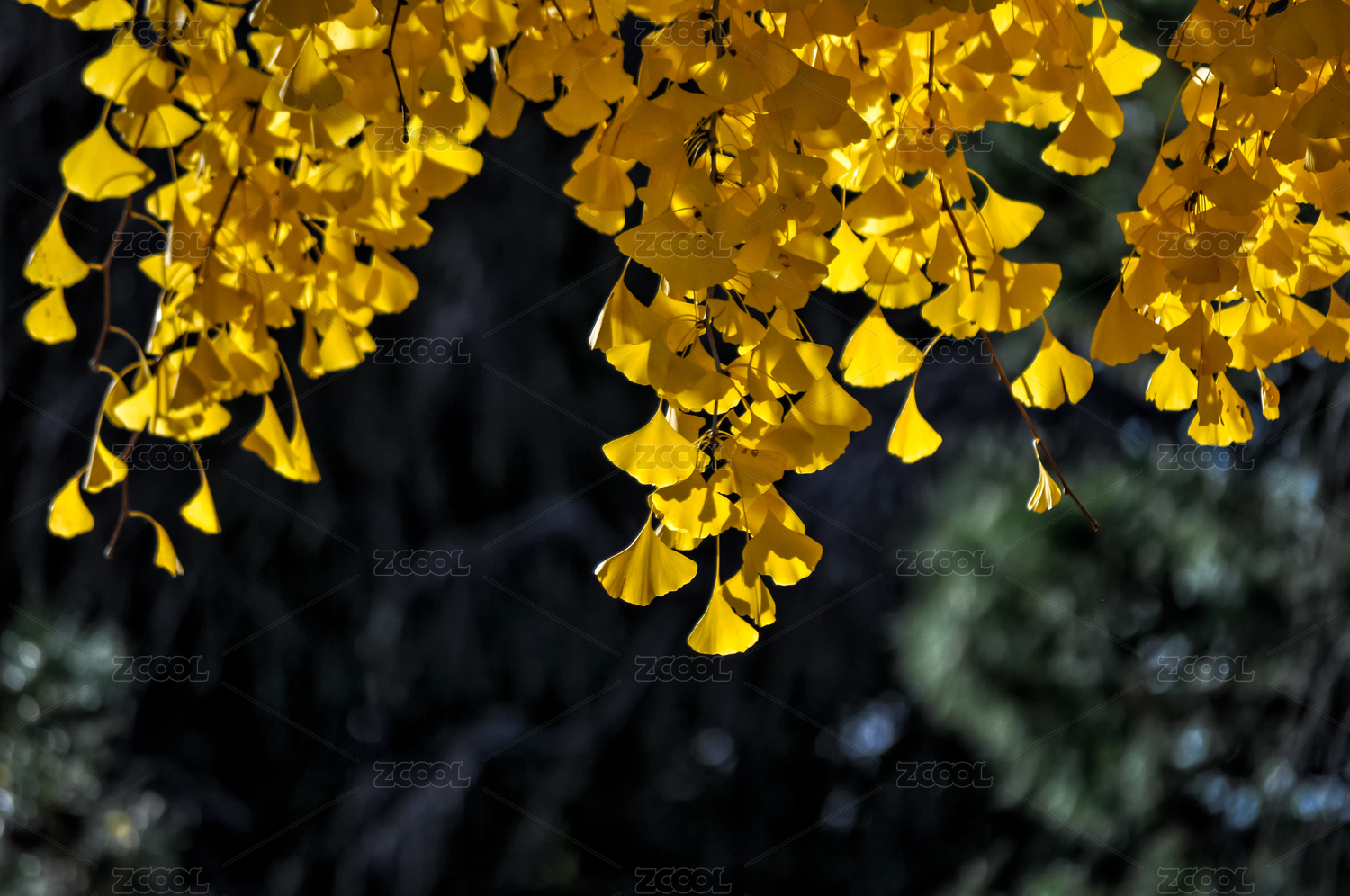 秋天阳光下闪闪发光的树叶银杏叶的自然风景