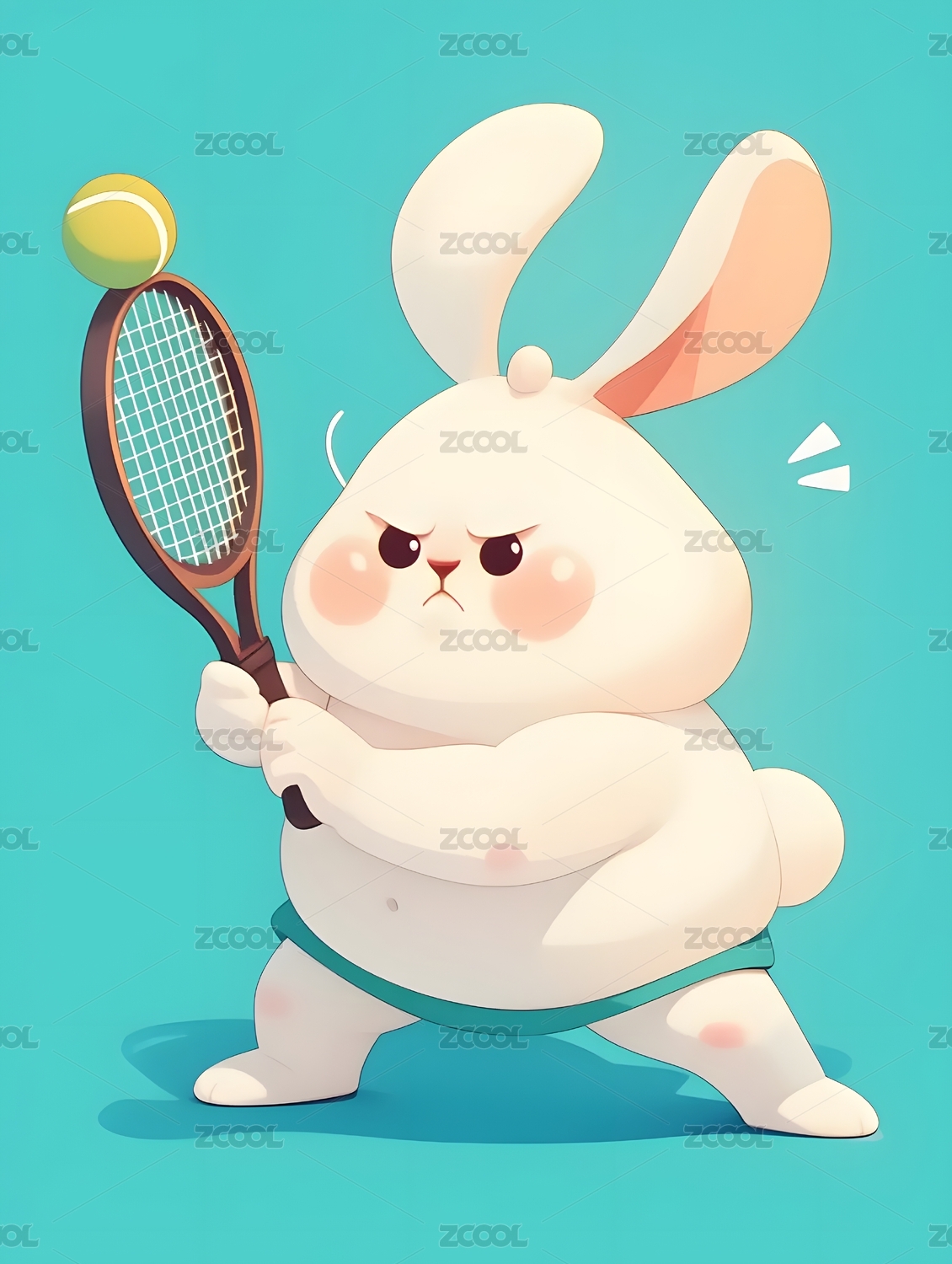 插画,卡通,兔子,运动,白,网球,球拍,胖,可爱,萌