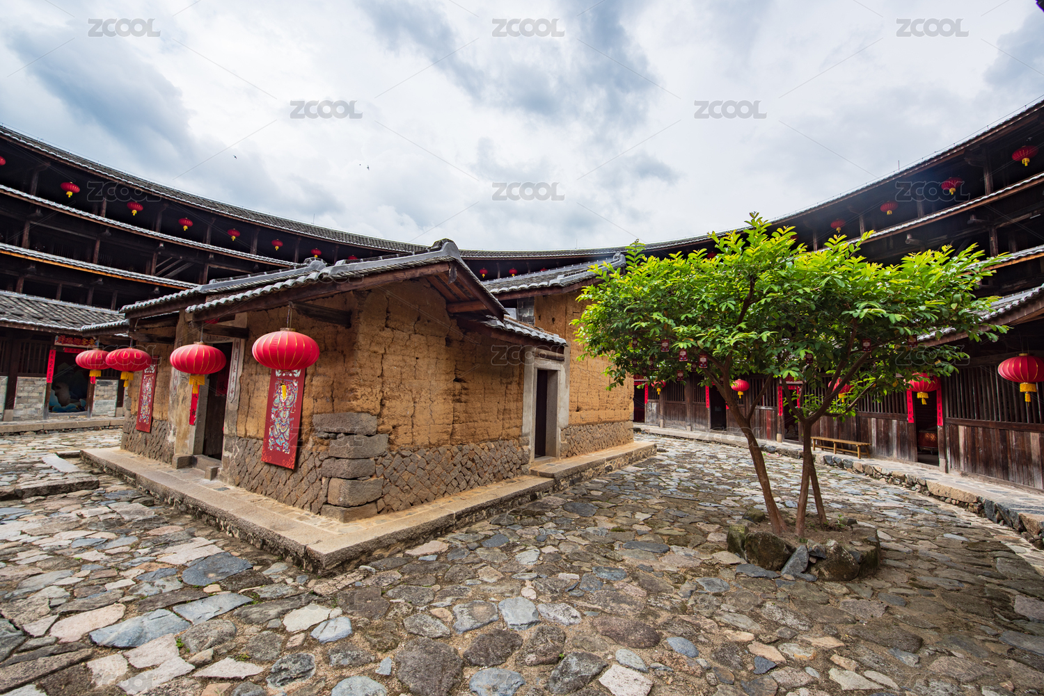 方形土楼内外楼天井转角,中国福建龙岩